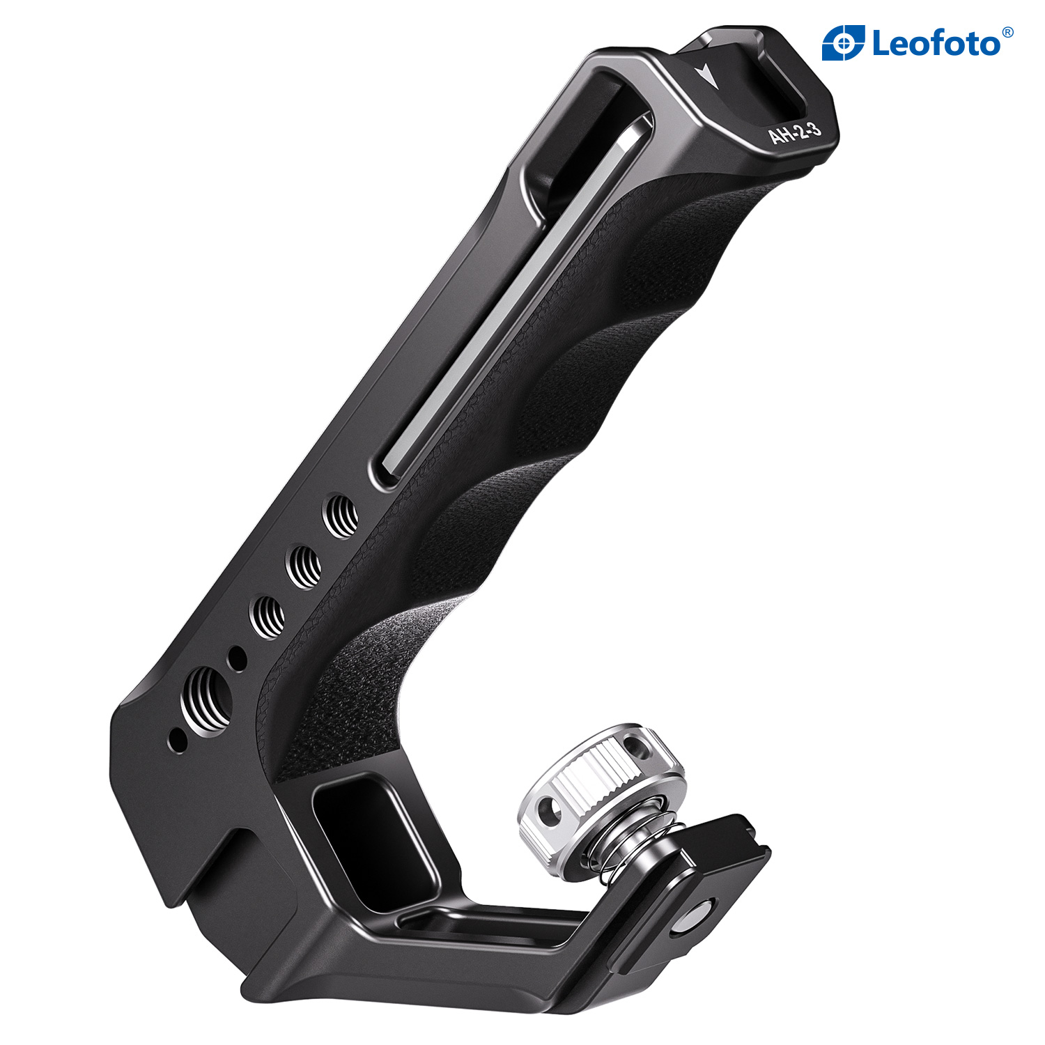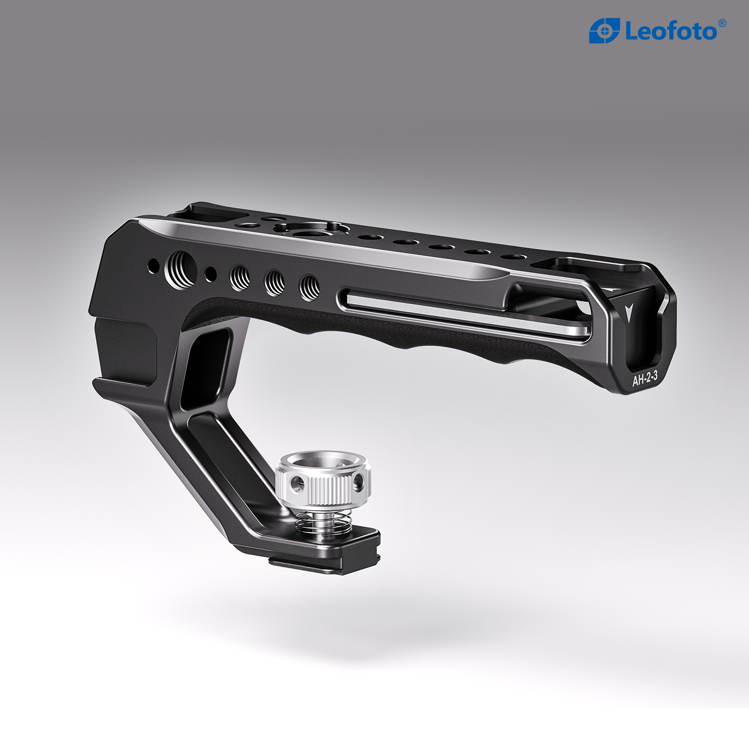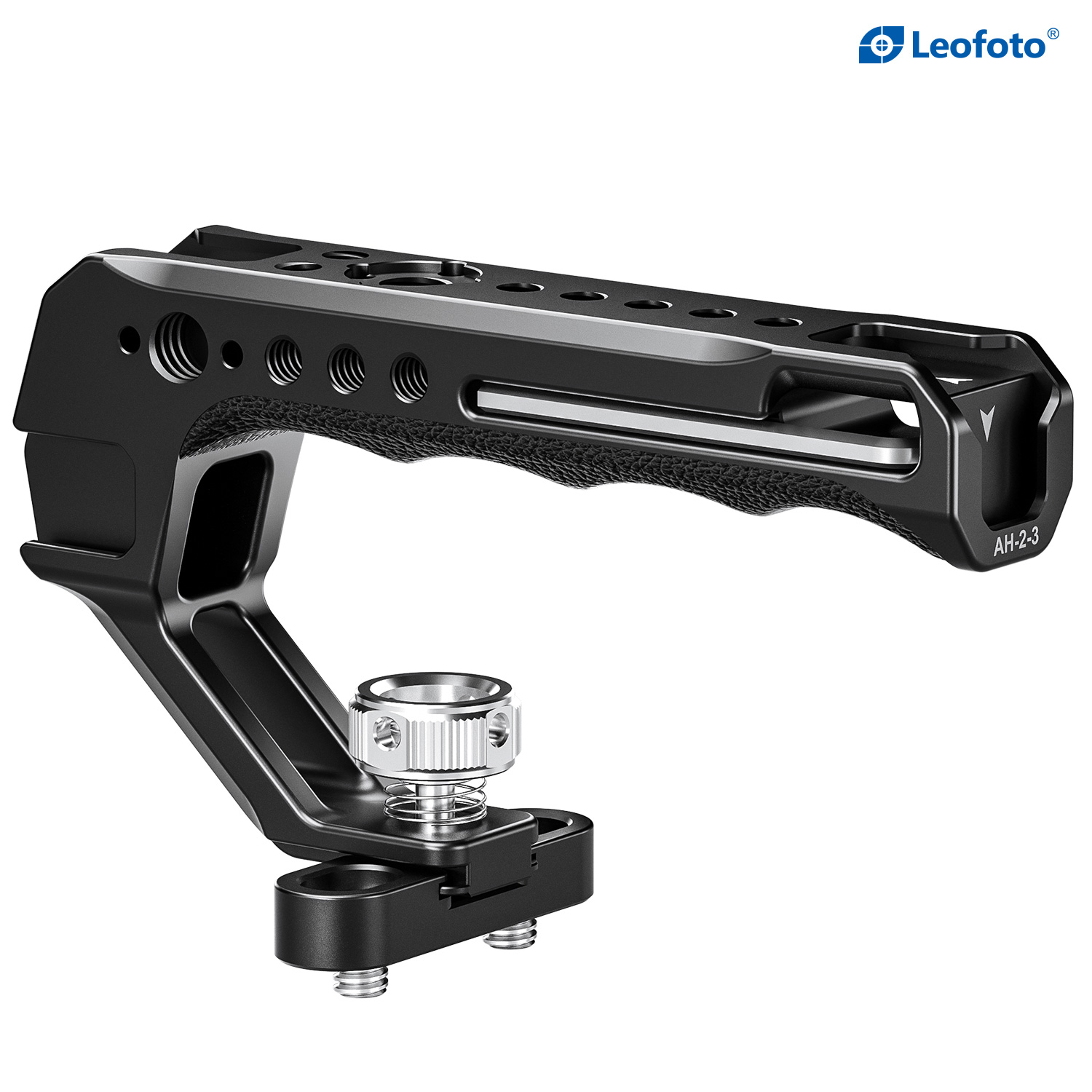 The Leofoto AH-2-3 Top Handle with Cold Shoe is a universal handle with cold shoe, simple and ergonomically designed to offer a comfortable handheld shooting experience. The handle is CNC machined from 6061-T6 aluminum and hard anodized making it light weight and durable and has an ergonomic silicone grip for added comfort. It features various mounting sockets along the handle that allow simultaneously mounting microphone, LED light, monitor, and other accessories. There is also a magnetized allen wrench integrated into the handle for convenient adjustments. Overall, the lightweight and practical handle can provide a wide range of mounting points and an excellent shooting experience.