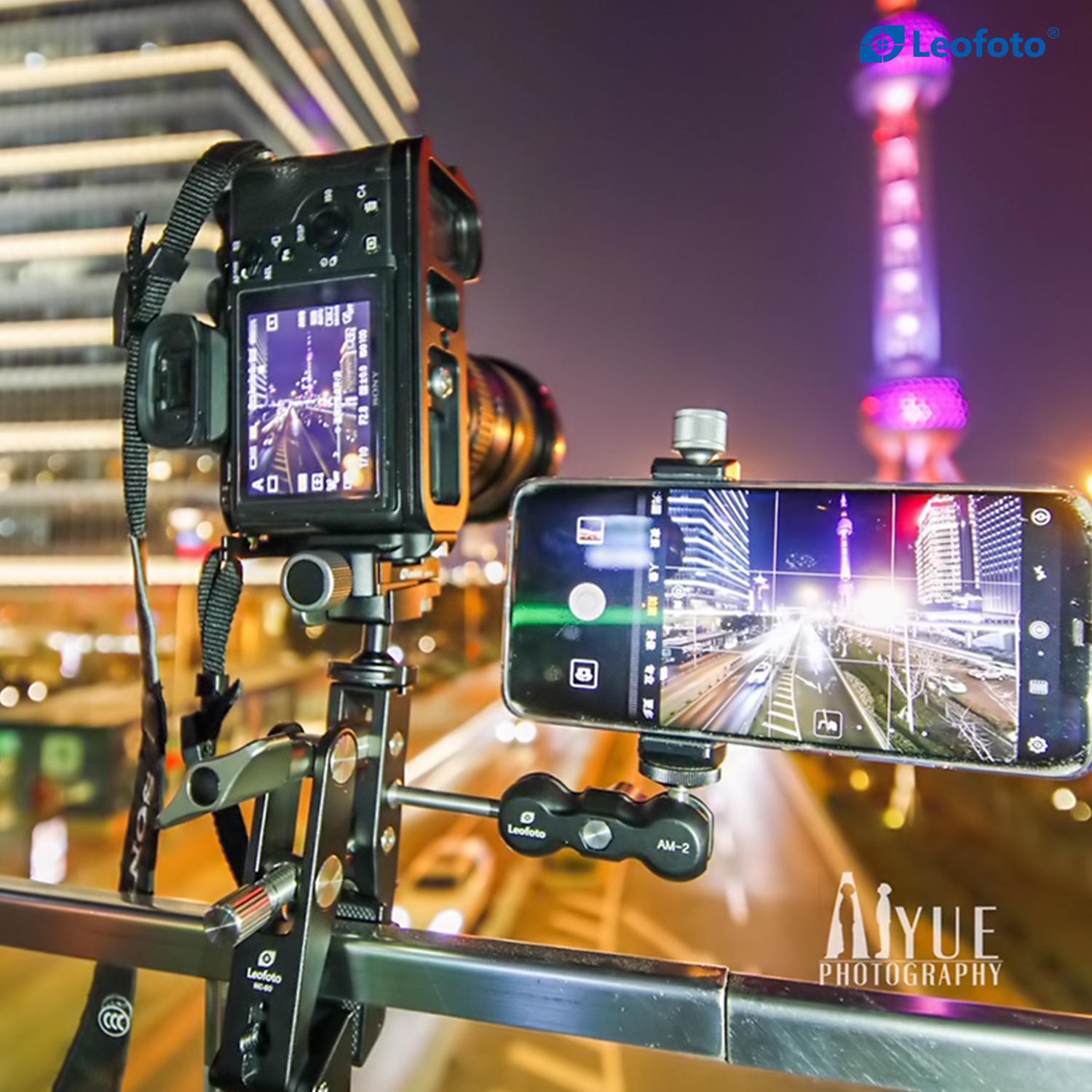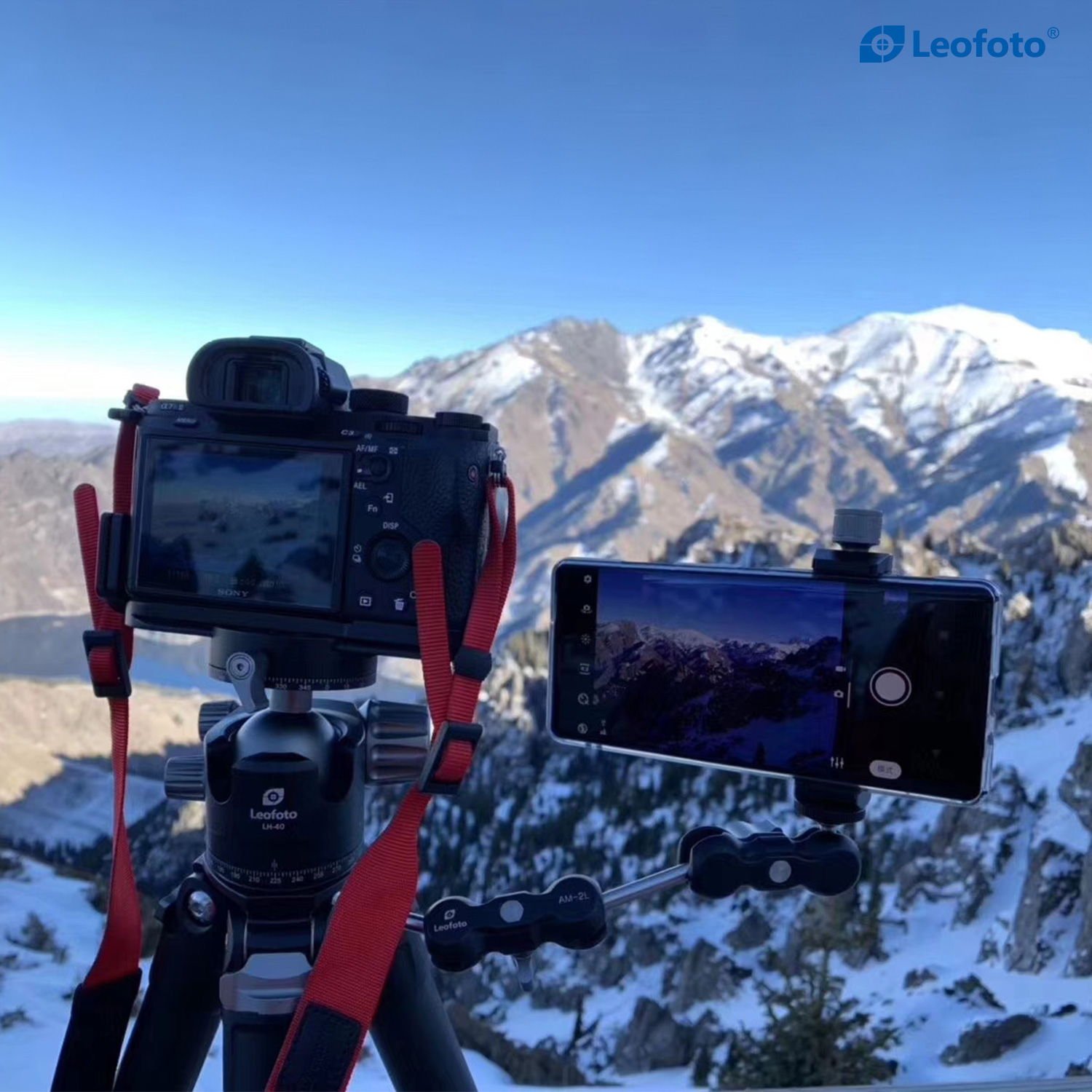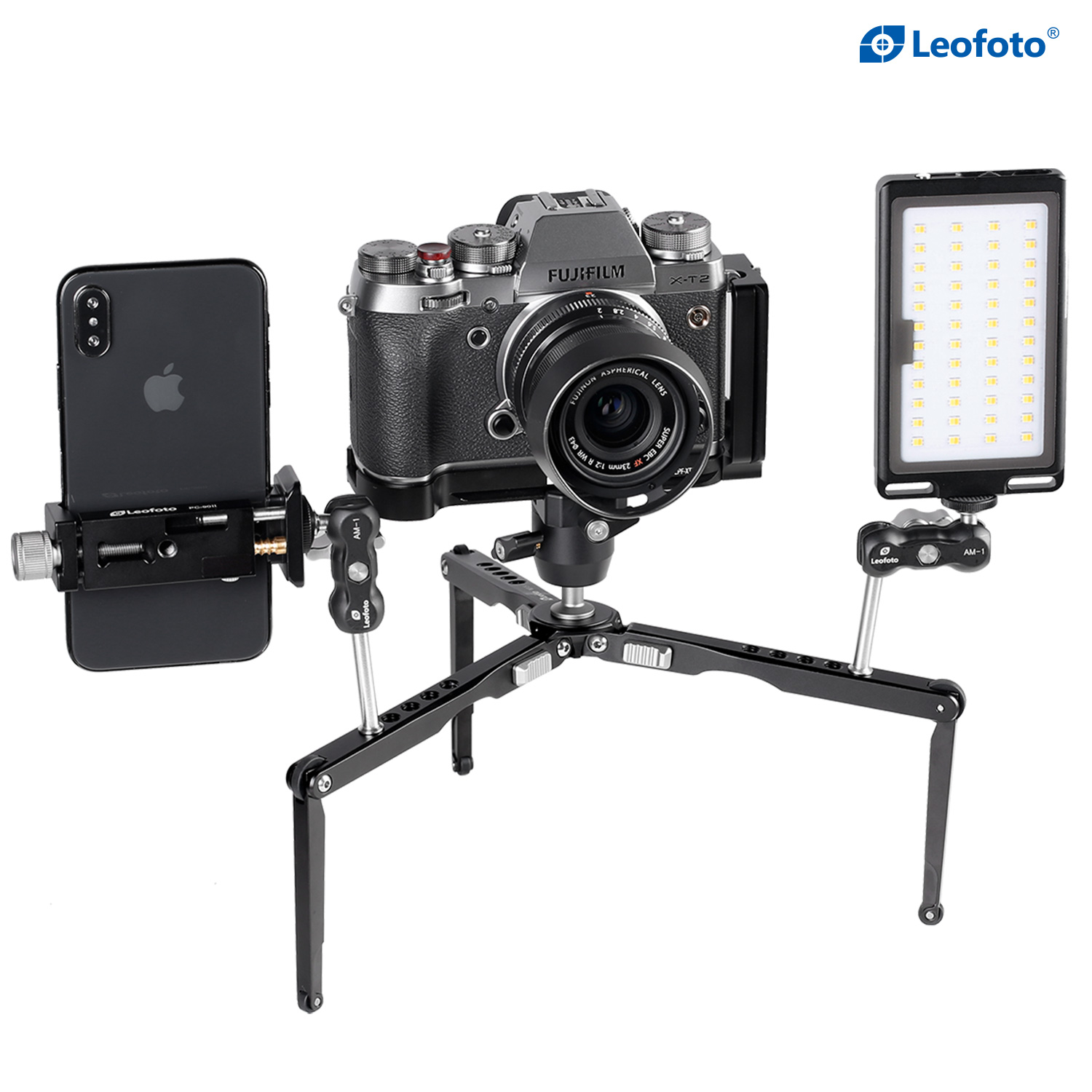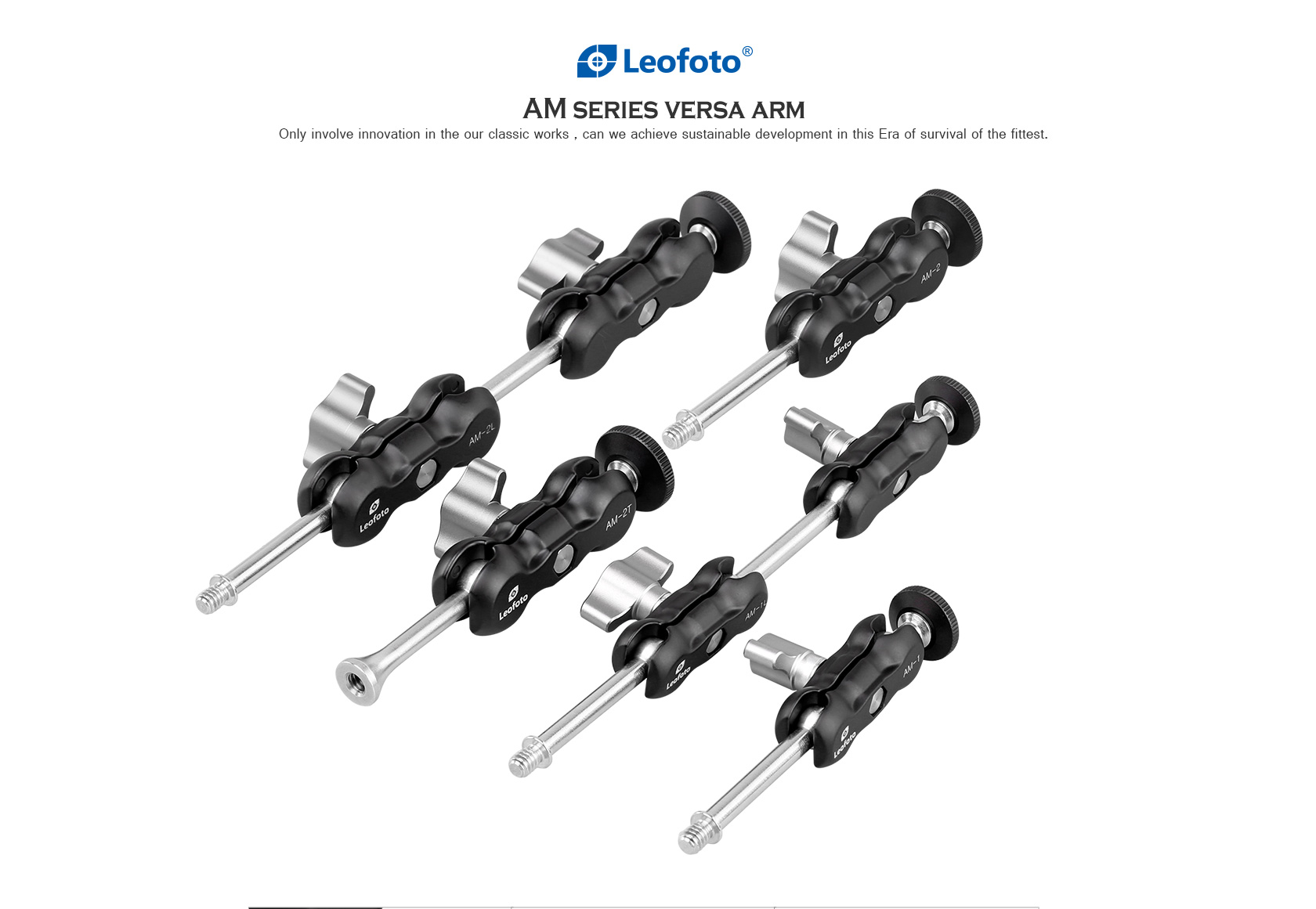 The Leofoto AM Series “Heavy-Duty” Versa Magic Arm is a multi-purpose tripod accessory that attaches to the leg of select Leofoto tripods, or other tripods and camera brackets with a 1/4″-20 accessory slot. Each end of the magic arm features a ball-and-socket joint that rotates 360°, and the center elbow joint locks in any position.