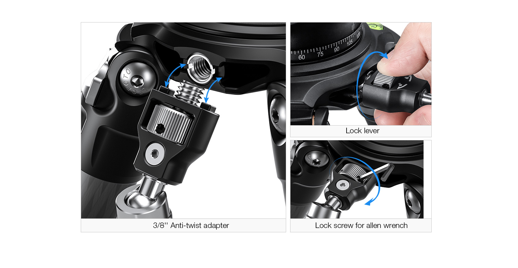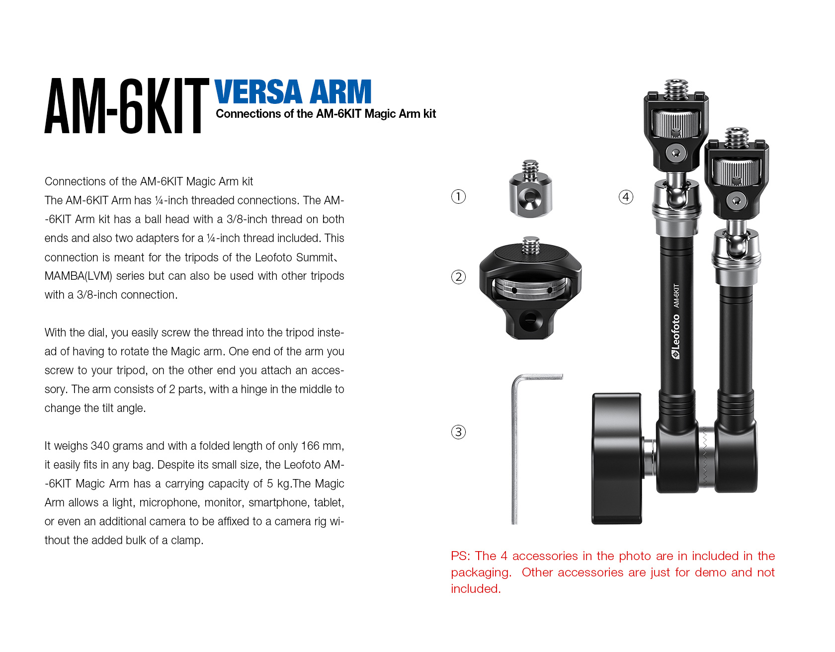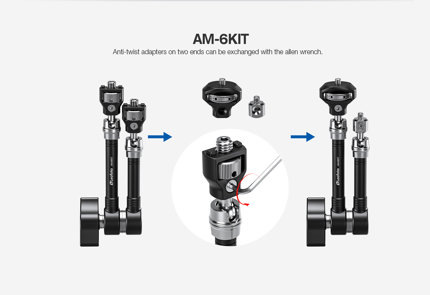 Leofoto AM-6Kit Versa Magic Arm “Heavy-Duty” | Anti-Twist Adapter | 1/4th and 3/8″ Mounting Screws