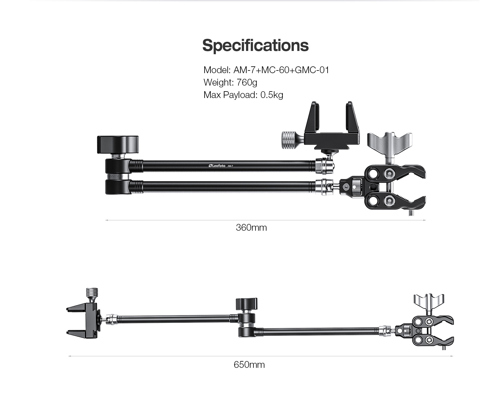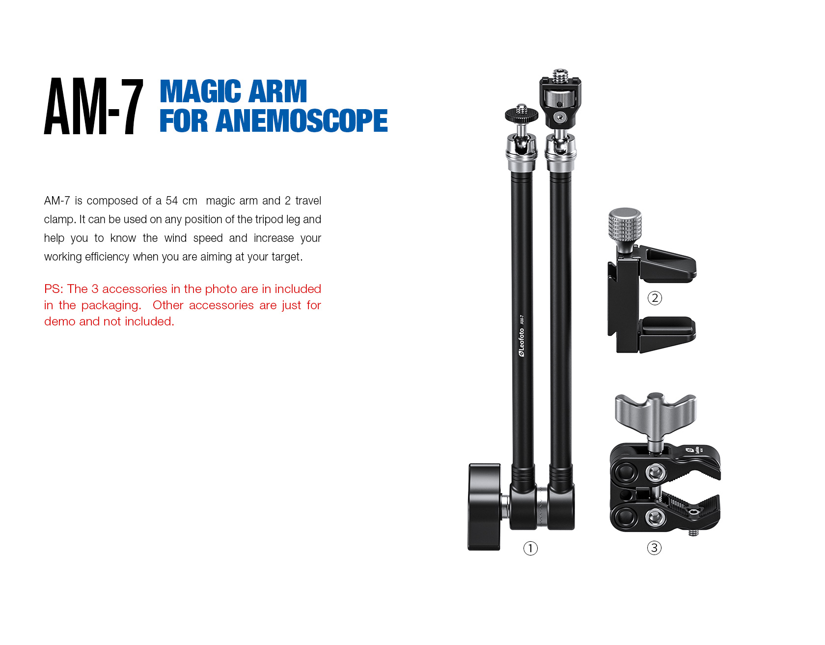 Leofoto AM-7 Magic Arm + MC-60 Clamp + GMC-01 Clamp Set for Kestrel Weather Meter