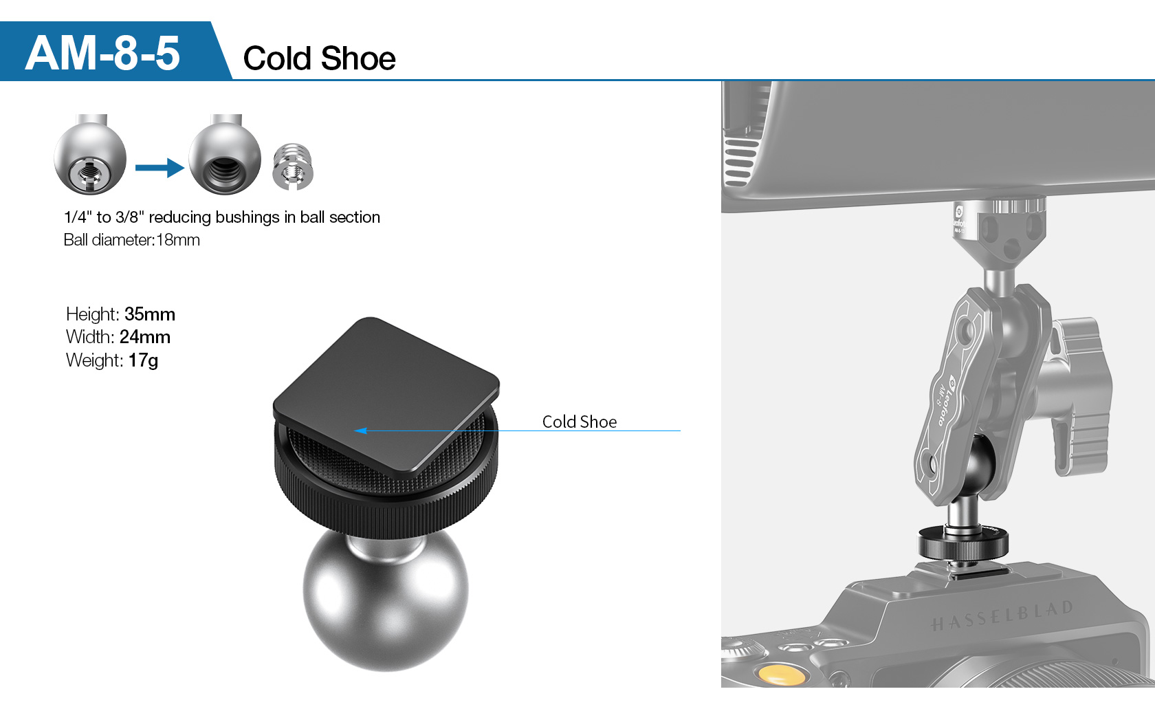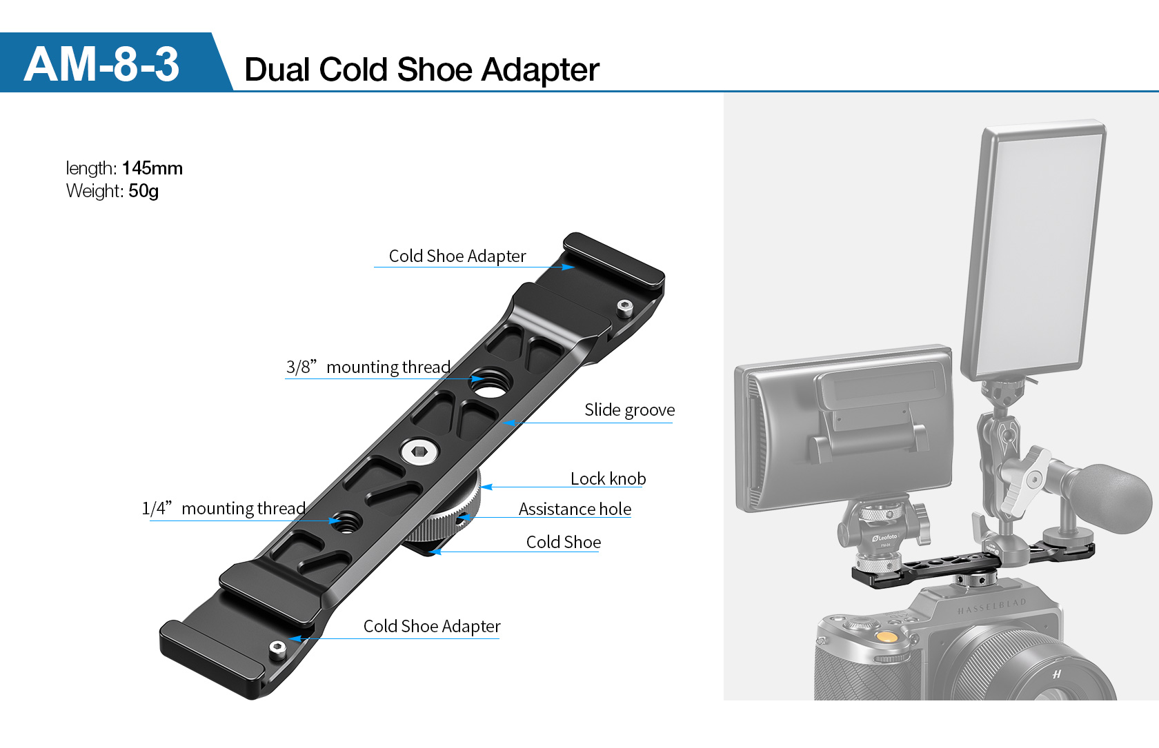 The Leofoto AM-8 Professional Magic Arm is one of the most adaptable magic arms in the industry. The AM-8 main body from the AM-8 kit, can be combined with all the other AM-8 various arm lengths and adapters to create the most ideal setup for the user. With the endless amount of mounting options, this magic arm can be used in a myriad of tasks.
