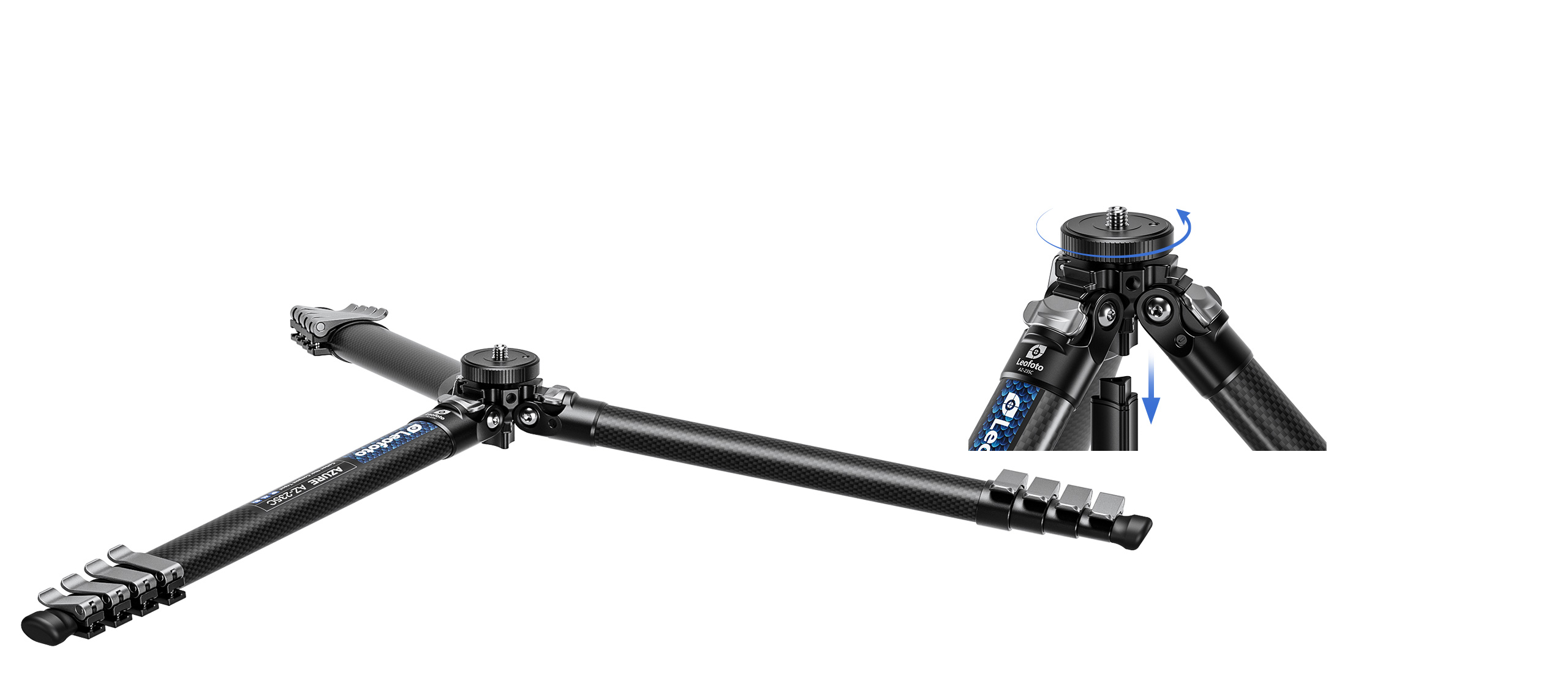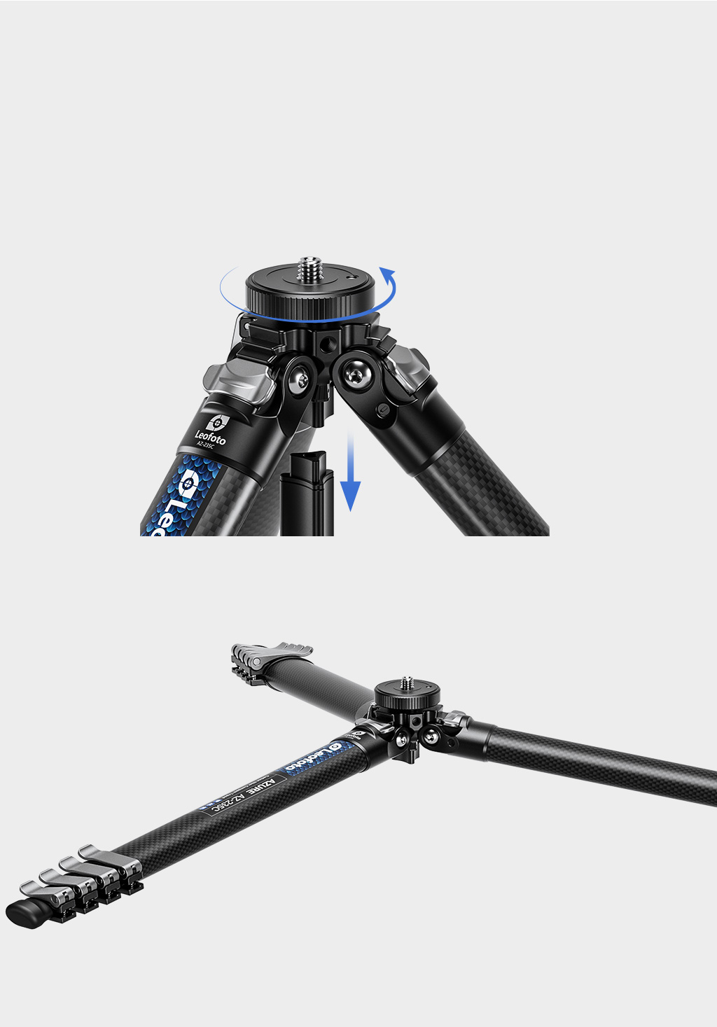 Center column is designed to be Y shaped to reduce the space of the tripod and make the tripod more tight and compact without sacrificing the stability of the tripod.