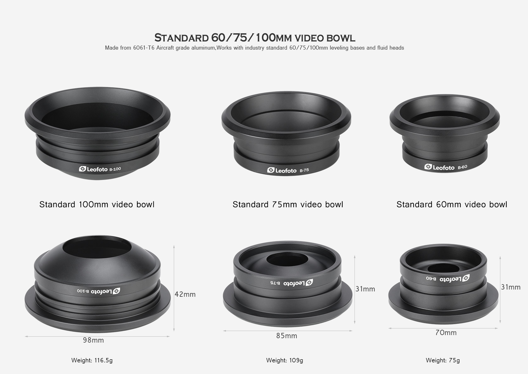 / Leofoto BA-100/75/60 100/75/60mm Half-Bowl Video Head Adapter for Gitzo 5 series and Leofoto LM/N-4 series