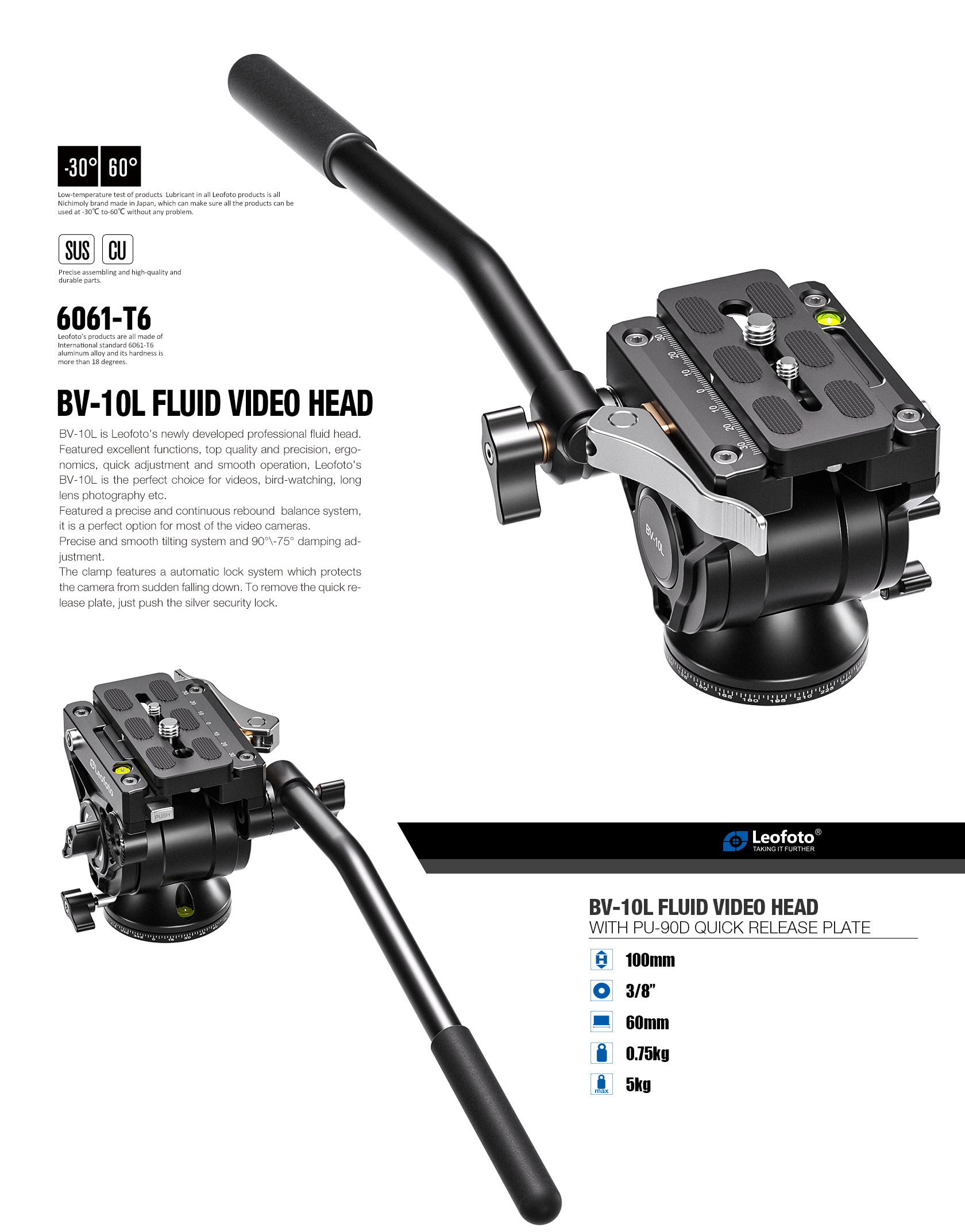 Leofoto BV-10L (Lever-Release Clamp) Fluid Video Head