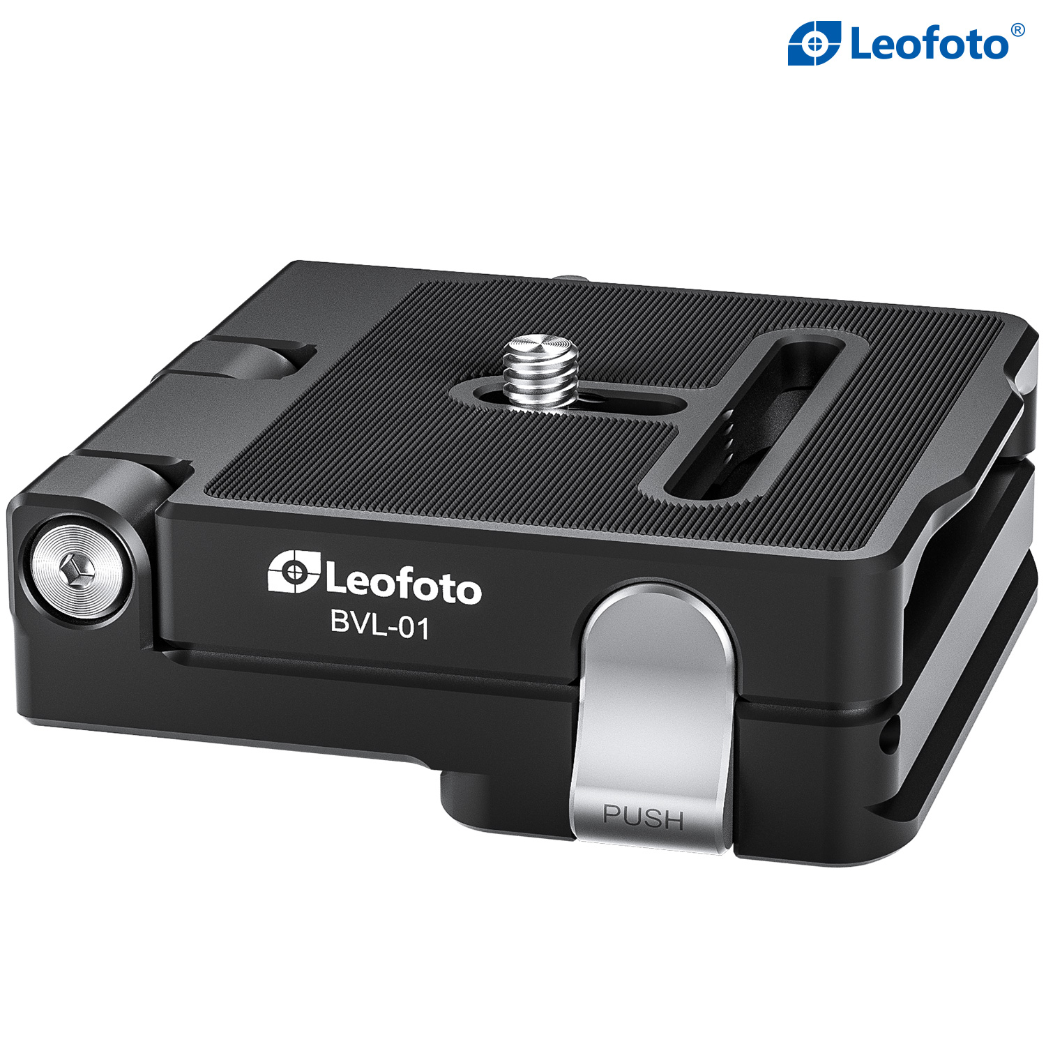 When the plate is tilted 90 degrees, a spring-loaded locking mechanism will lock the plate automatically and securely. An additional safety mechanism is used to prevent heavier equipment from causing the plate to fold up unintentionally. The bottom of the BVL-01 is equipped with threaded holes in 3/8 and 1/4″. The fixing screw on the top is 1/4″ thread.