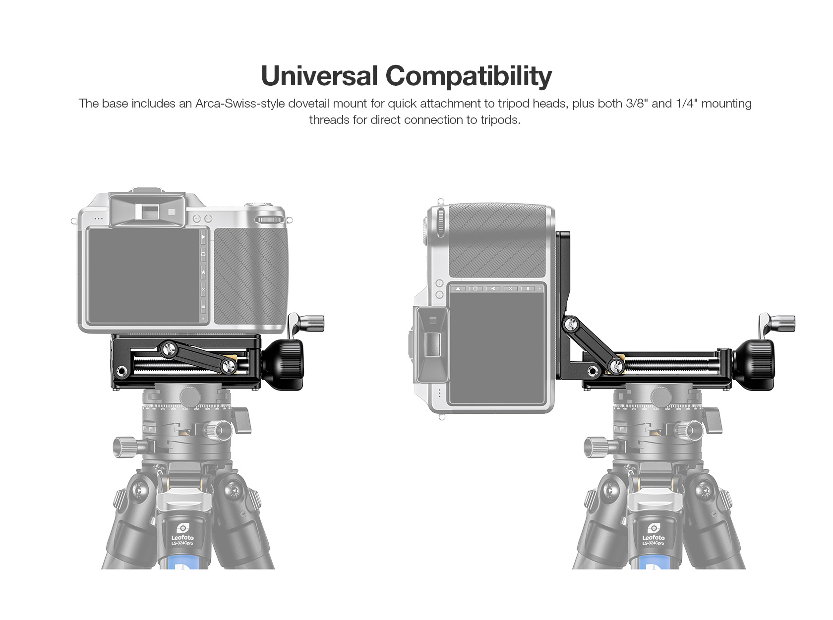 Arca-Swiss dovetail, 3/8” & 1/4” mounting threads