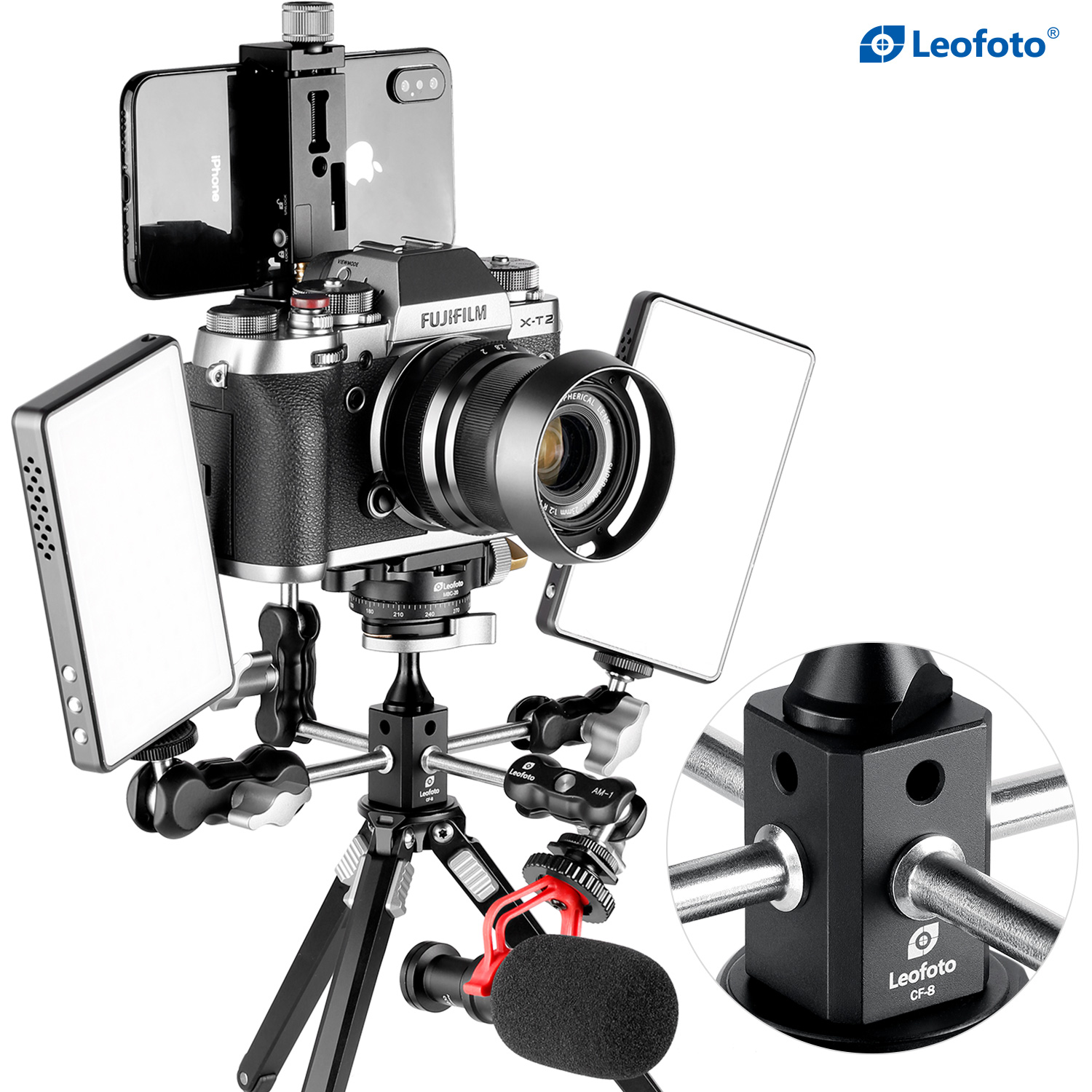 Leofoto CF-8 Tripod Multi-Adapter Post/Block with 1 Male 1/4″ Stud, 4 Female 1/4″ Sockets, 1 x 3/8″ / 1/4″ Female Accessory Ideal for Magic Arm