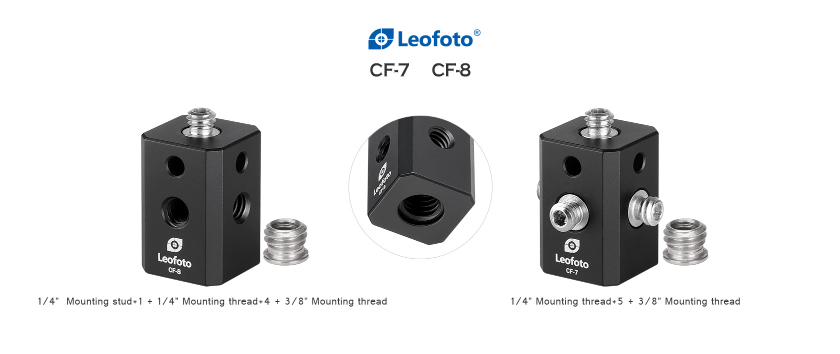Leofoto CF-7 Tripod Multi-Adapter Post/Block with 5 Male 1/4″ & 1 x 3/8″ / 1/4″ Female Accessory
