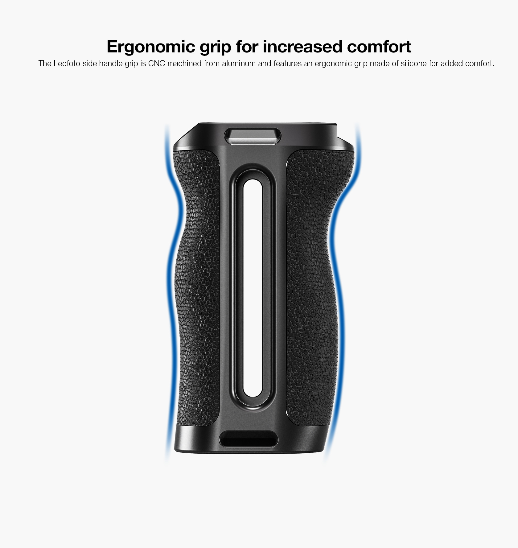 The Leofoto CH-7-3 Universal Side Handle is designed to provide a comfortable grip for increased stability with access to accessory mounts for cameramen. The handle attaches to almost any cage or camera rig featuring two 1/4”-20 threaded holes. The CH-7-3 features 3/8”-16, 1/4“-20 and cold shoe accessory mounts on top to add a mounting arm, light, mic, or other accessories. This side handle is adjustable to fit different cage heights and can quickly switch between left-handed or right-handed orientation with the built-in allen wrench. Made of hard anodized aluminum, this handle features an ergonomic silicone grip to provide filmmakers with a smooth and comfortable shooting experience.