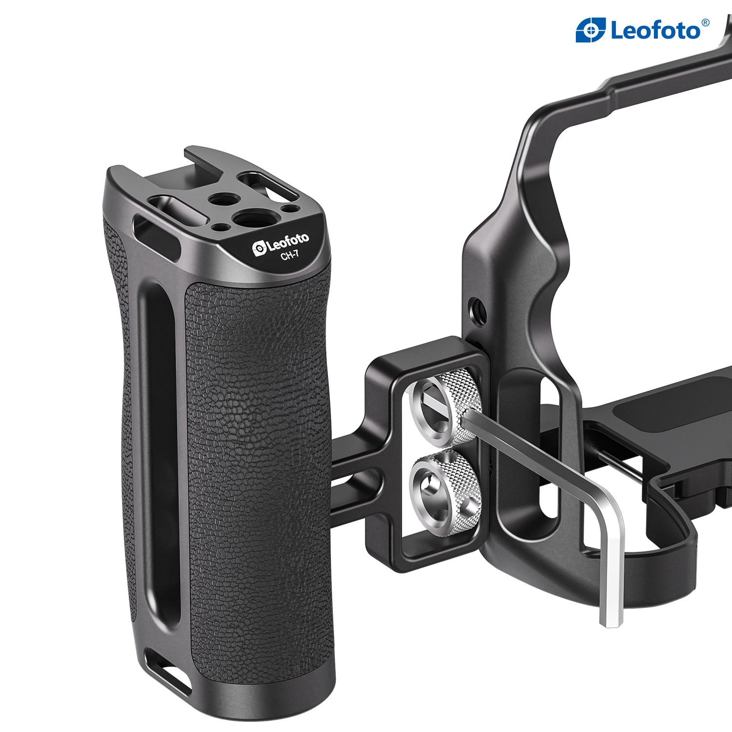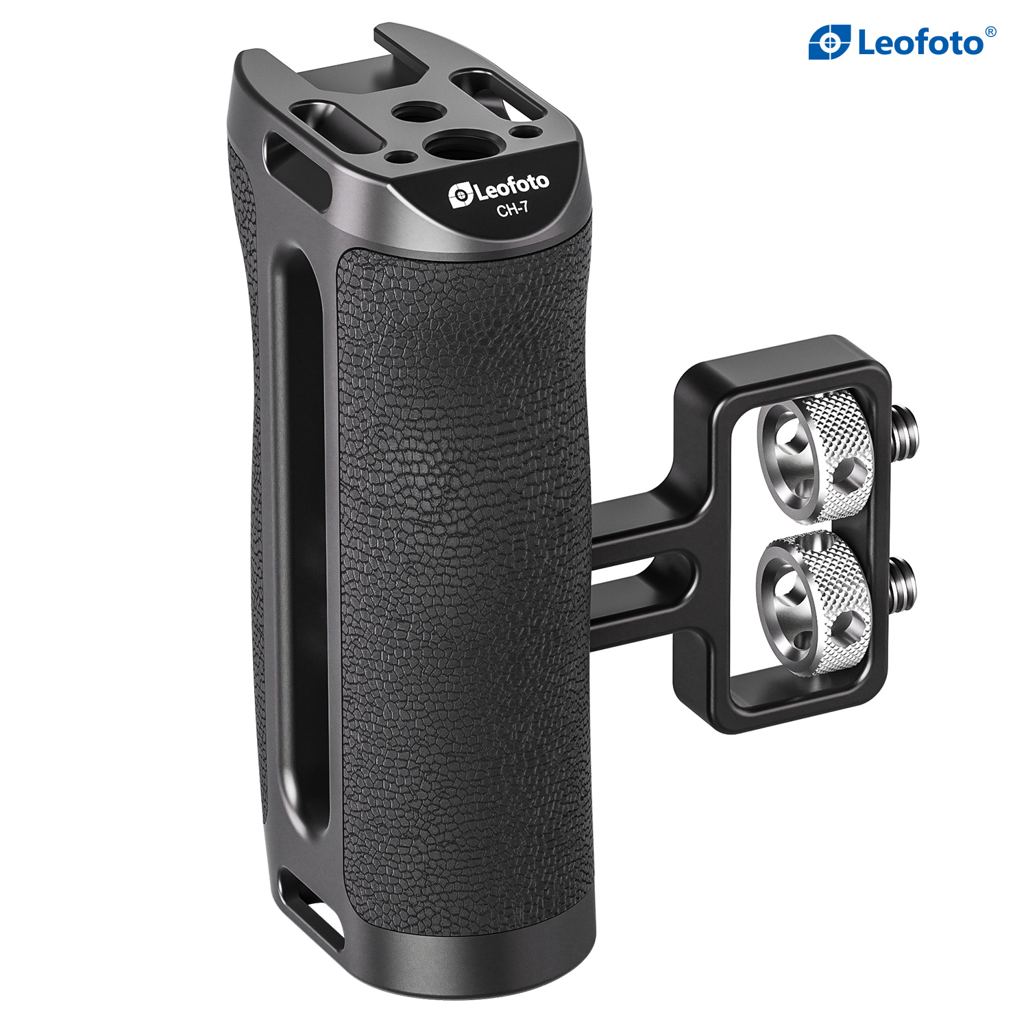 The Leofoto CH-7-3 Universal Side Handle is designed to provide a comfortable grip for increased stability with access to accessory mounts for cameramen. The handle attaches to almost any cage or camera rig featuring two 1/4”-20 threaded holes. The CH-7-3 features 3/8”-16, 1/4“-20 and cold shoe accessory mounts on top to add a mounting arm, light, mic, or other accessories. This side handle is adjustable to fit different cage heights and can quickly switch between left-handed or right-handed orientation with the built-in allen wrench. Made of hard anodized aluminum, this handle features an ergonomic silicone grip to provide filmmakers with a smooth and comfortable shooting experience.