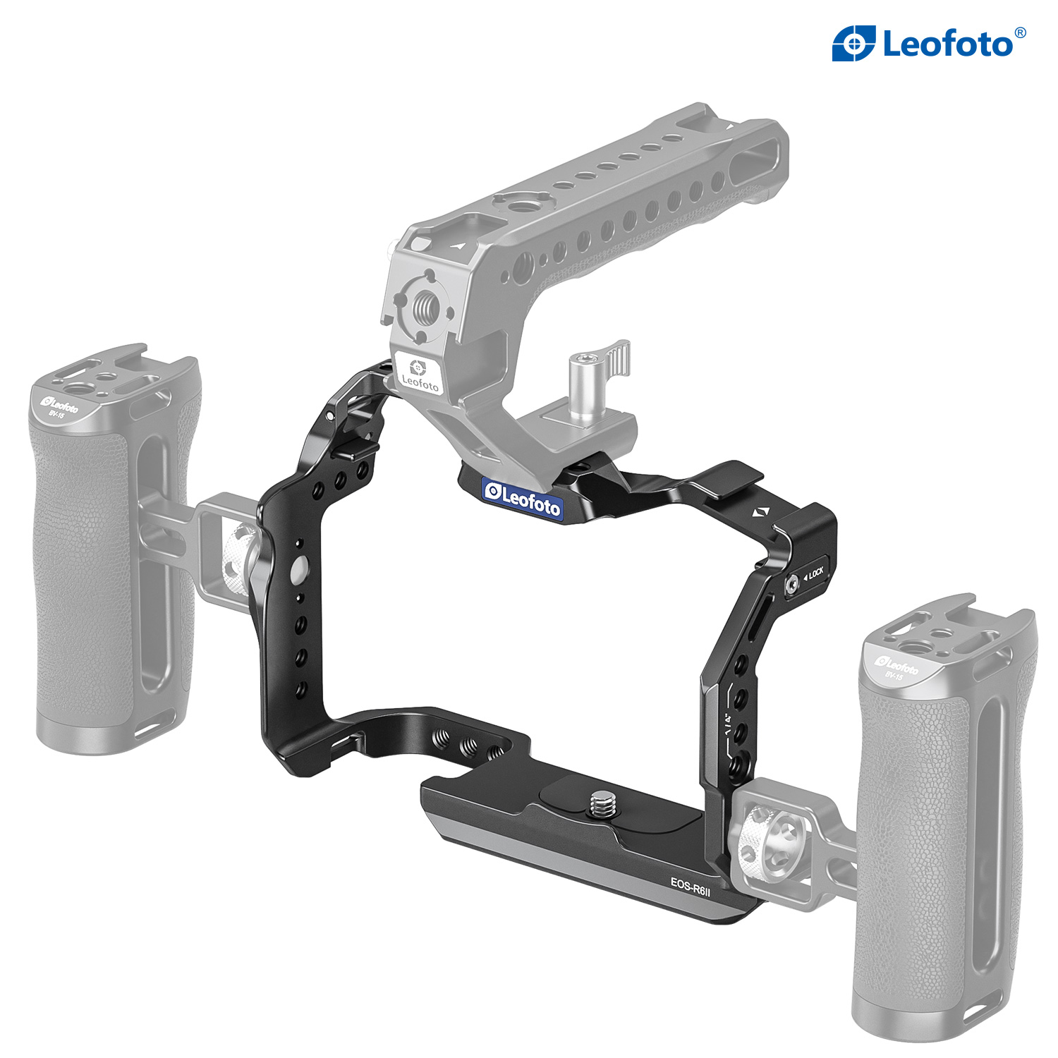 Protect your Canon EOS R6 Mark II / R6 Mark III from the rigors of the production day while also providing multiple accessory mounting points that won’t stress your camera’s body with this form-fitting Leofoto EOS-R6II Custom Cage for Canon EOS R6 Mark II / R6 Mark III Camera. The cage features one cold shoe mount on top of the cage and one on the side, as well as multiple 1/4″-20 and 3/8″-16 threaded accessory-mounting holes. The 3/8″-16 threaded holes feature anti-twist divots.