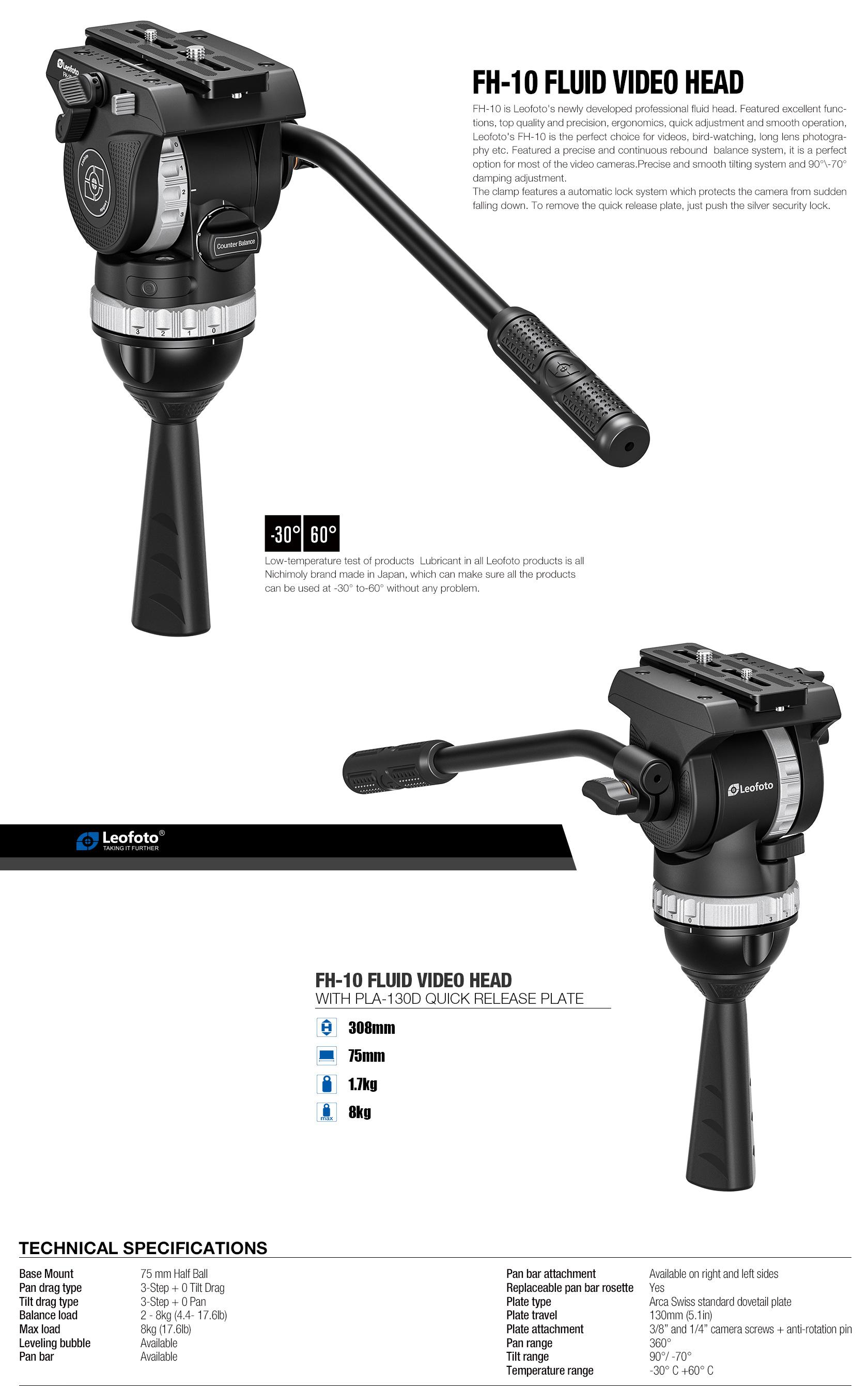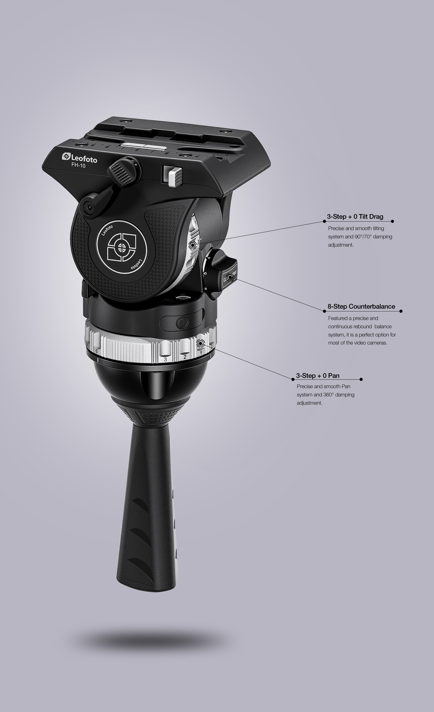 The FH-10 features an eight-step counterbalance system and three-step pan and tilt drag adjustments, with an additional zero-drag option for both pan and tilt, providing precise and flexible control for every shot.