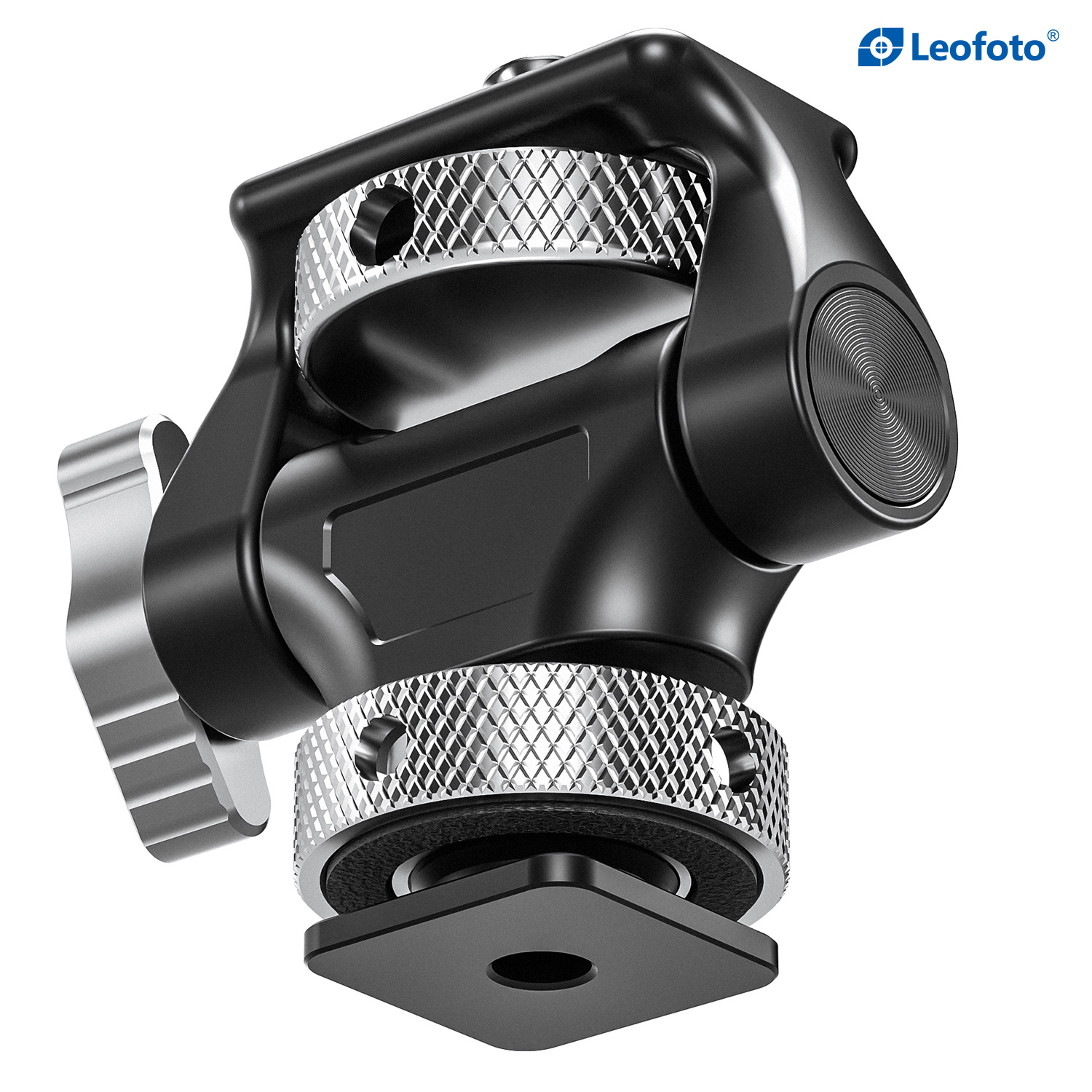 Mount any 5 or 7″ monitor with a 1/4″-20 mounting thread on your camera with the Leofoto FM-04 Swivel and Tilt Adjustable Monitor Mount | Coldshoe. This adjustable mount easily attaches to your camera rig using a cold shoe. It swivels 360°, tilts 180°, and is lockable in any position to establish the best possible viewing angle.