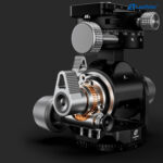 The design of this head puts the center of rotation of X and Y- tilts in the same place, making the pivoting radius of these movements very small, thus allowing users to maintain perspectives during readjustment. The self-locking shock absorption feature for the swivel function allows for near total compensation of the camera’s weight. In addition to manual operation, the G4ProM also offers the precision of separate gear-driven vertical/horizontal movements when the locking levers are fixed, with quick release clutches for fast, large adjustments.