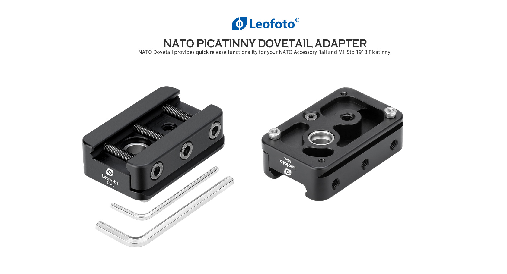 Compatible with lever clamps and Arca-type dovetails, the Leofoto GS-1 NATO Accessory/Picatinny to Dovetail Adapter makes it easy to reliably mount NATO accessory rail or Picatinny rail gear on your tripod.