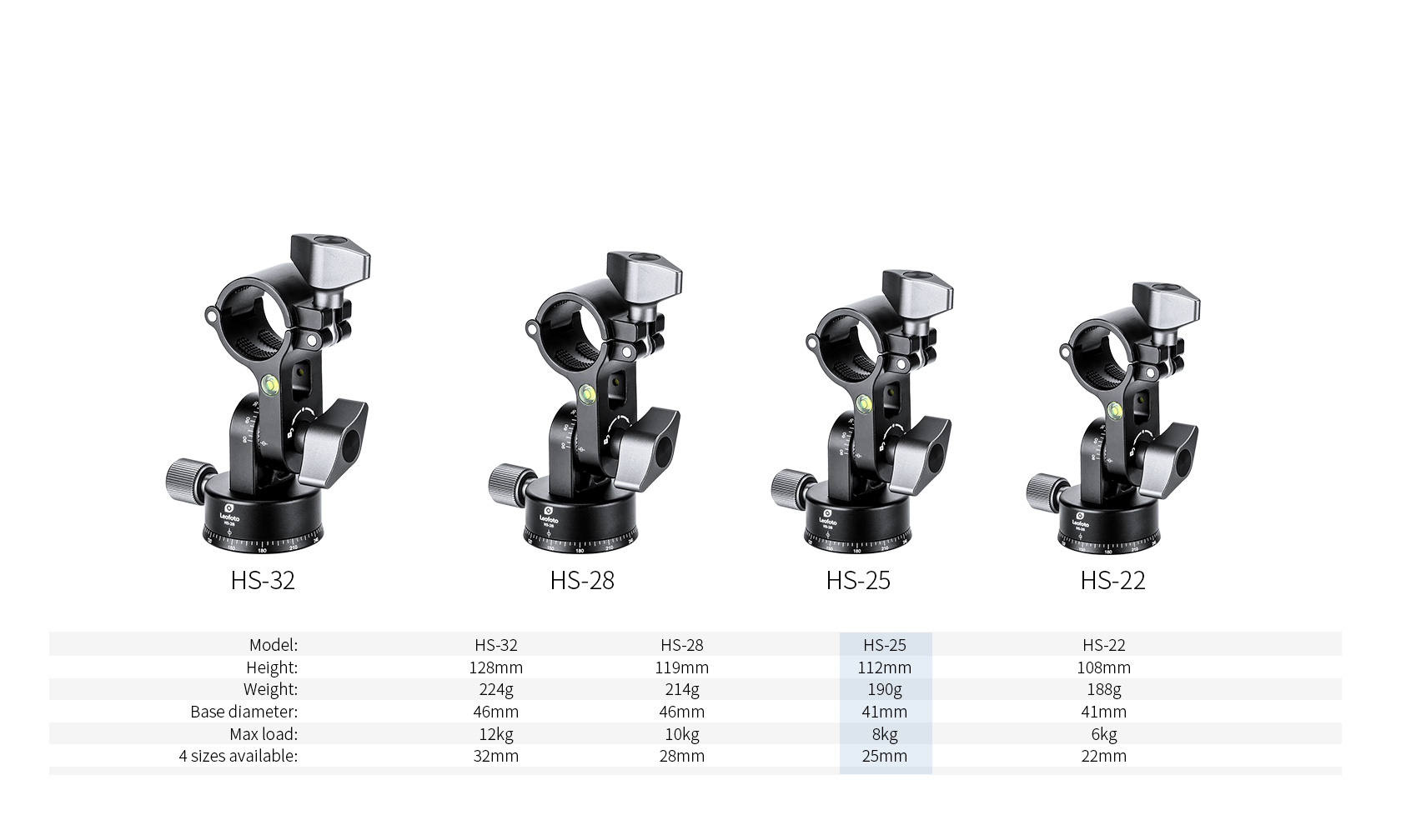 The Leofoto HS Series Center Column Tilt Adapter is designed for Leofoto Ranger LS Series tripods. It is CNC machined from aluminum alloy and hard anodized for durability. This tilt adapter features ±90° tilting, a 360° panning base and a toothed lock system and has a 3/8″ mounting socket on the base.