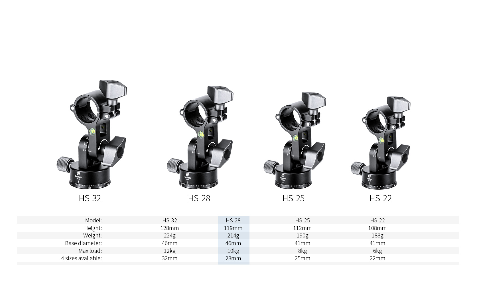 The Leofoto HS Series Center Column Tilt Adapter is designed for Leofoto Ranger LS Series tripods. It is CNC machined from aluminum alloy and hard anodized for durability. This tilt adapter features ±90° tilting, a 360° panning base and a toothed lock system and has a 3/8″ mounting socket on the base.