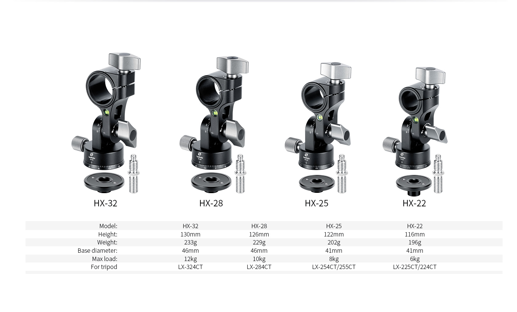 *Only compatible with Leofoto LX series tripod center columns, not other center columns. For standard ones, please see the HS series Center Column Tilt Adapter.