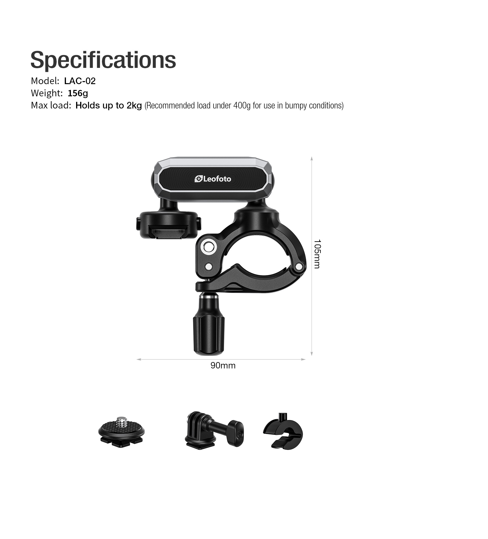 The Leofoto LAC-02 Handlebar Sports Camera Mount is a clamp-style solution designed specifically for cycling enthusiasts. Its quick-release handlebar clamp allows for fast and secure installation on a variety of bike handlebars.