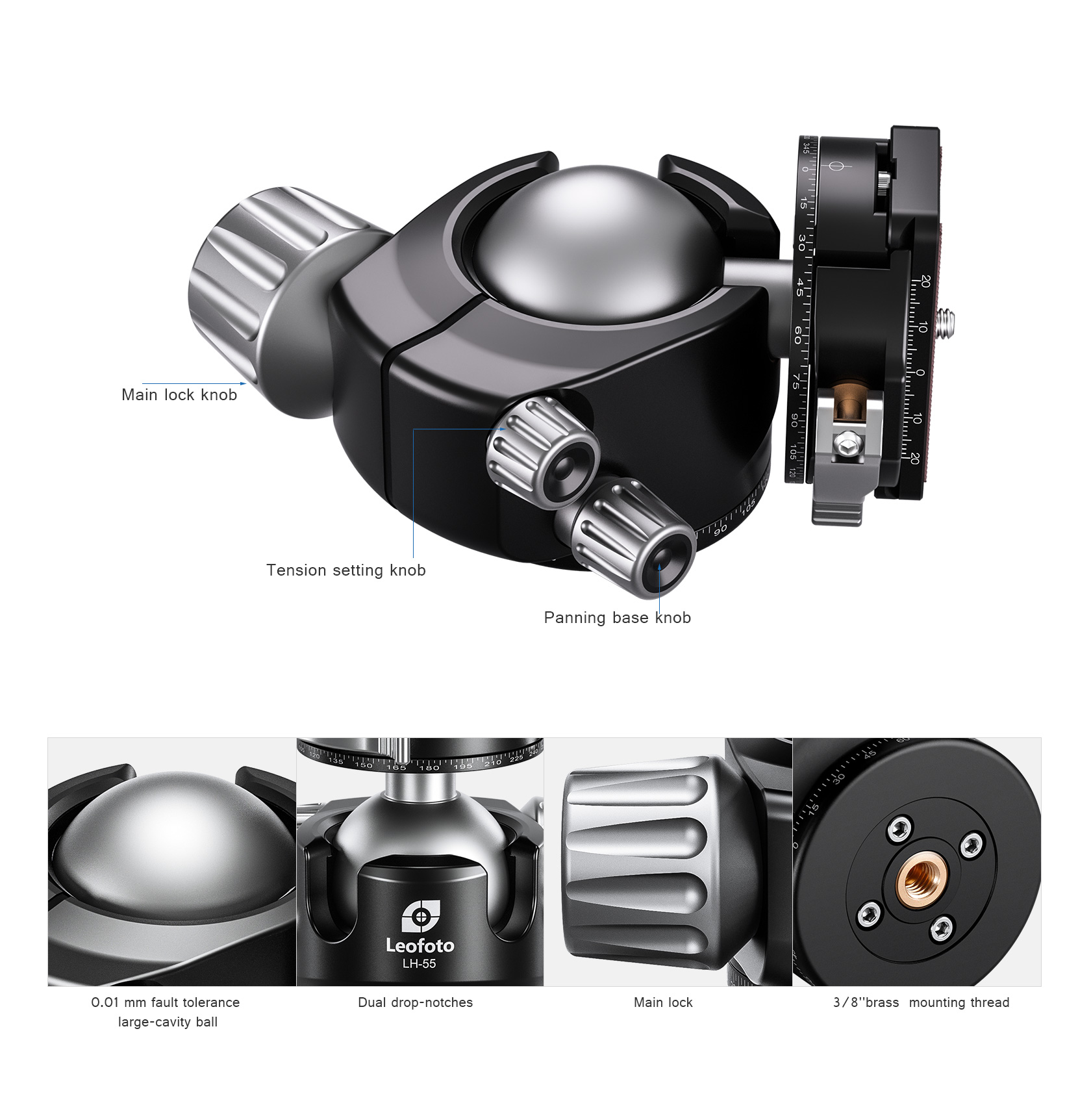 Leofoto LH-55PCL(WITH PCL-70 CLAMP) Professional ball head