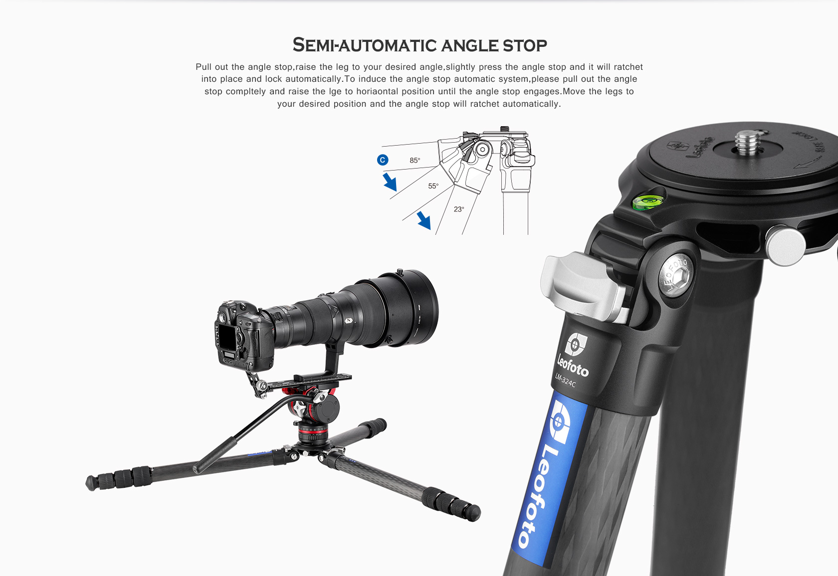 With the tripod’s three variable leg angle stops, it allows you to splay the legs completely out. At the tripod’s apex, the spider has been hollowed out, which adds to the relevance of the tripod’s light weight. Additionally, the mounting platform is removable, so it can be exchanged with the included 75mm video bowl to install a fluid head. An integrated 3/8″-16 socket is made available on the side of the spider for photo or video accessories. Leofoto tripods come with a carrying case to store or travel with the support system.