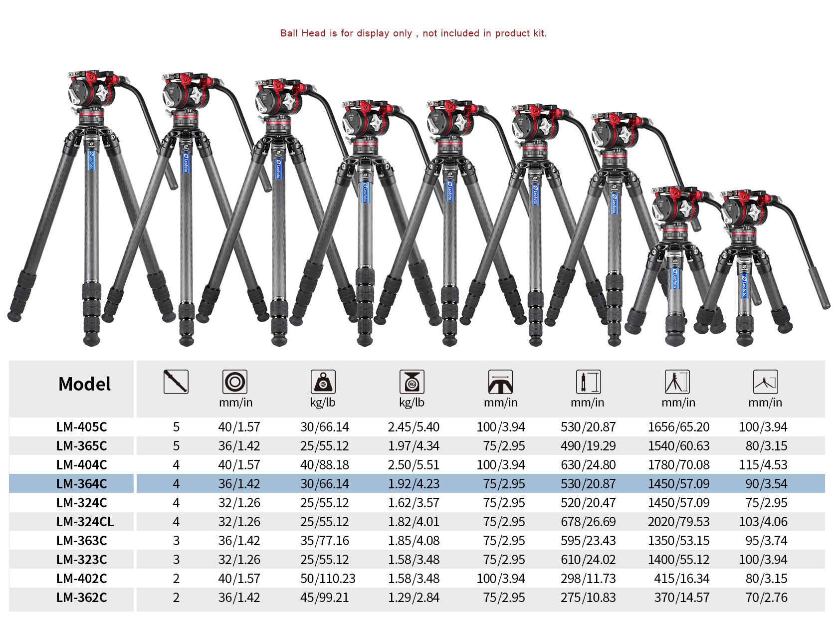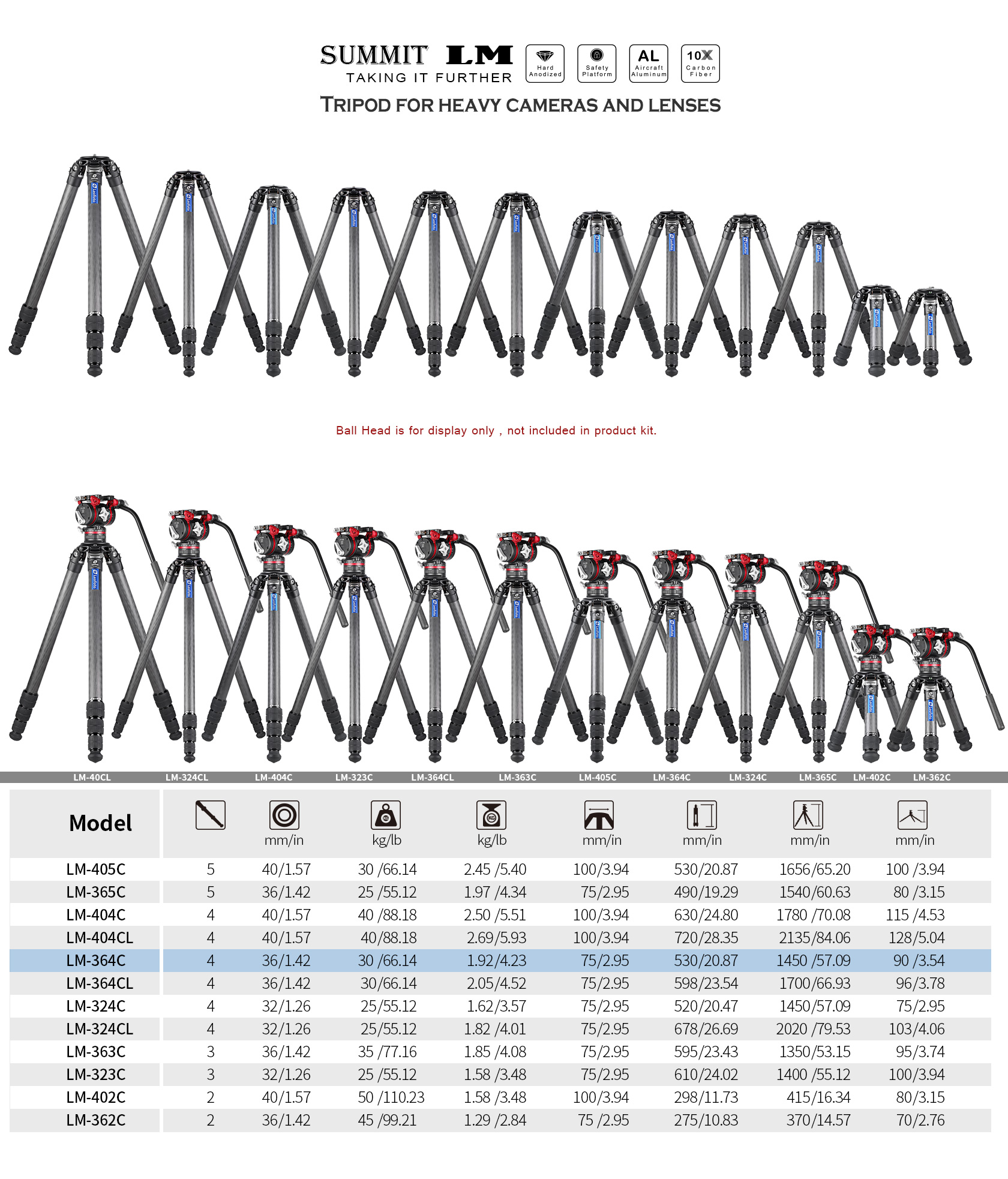 Reach for the top with the Leofoto LM Summit Series Carbon Fiber Tripod. The 4-section support has 10x carbon fiber tubes that make the tripod a lightweight support while maintaining a heavy max load capacity. The 6061 aluminum parts are CNC machined and hard anodized, creating a durable and scratch resistant surface. The twist leg lock system is quick, only requiring a quarter turn, which enables you to completely extend and collapse the tripod rapidly.