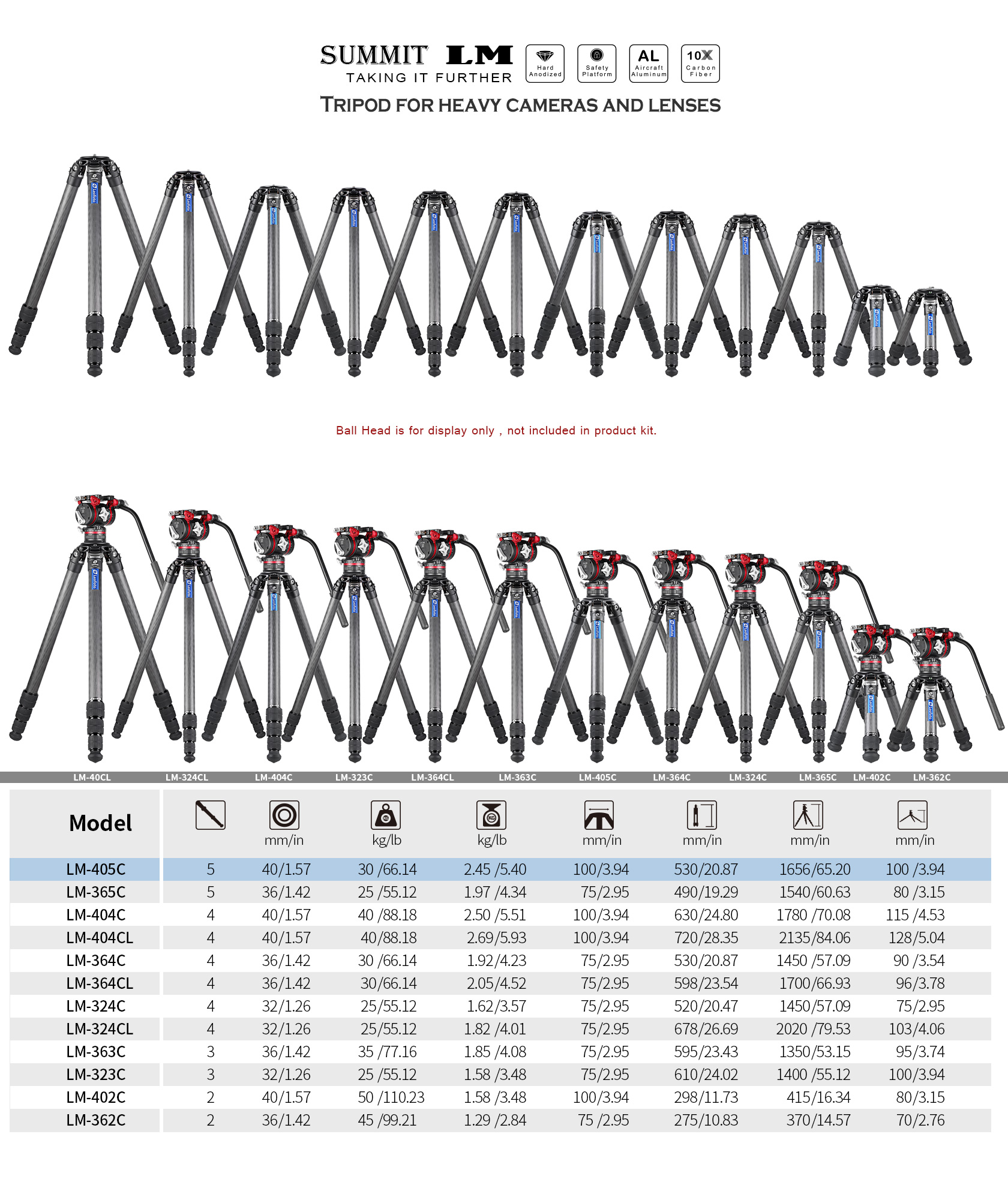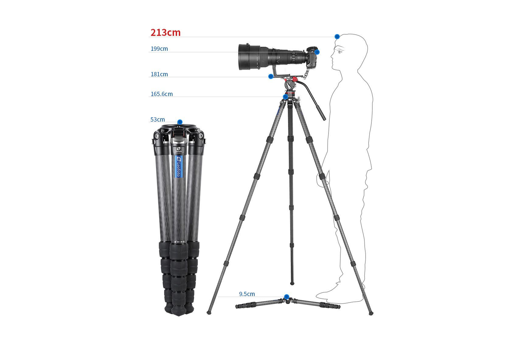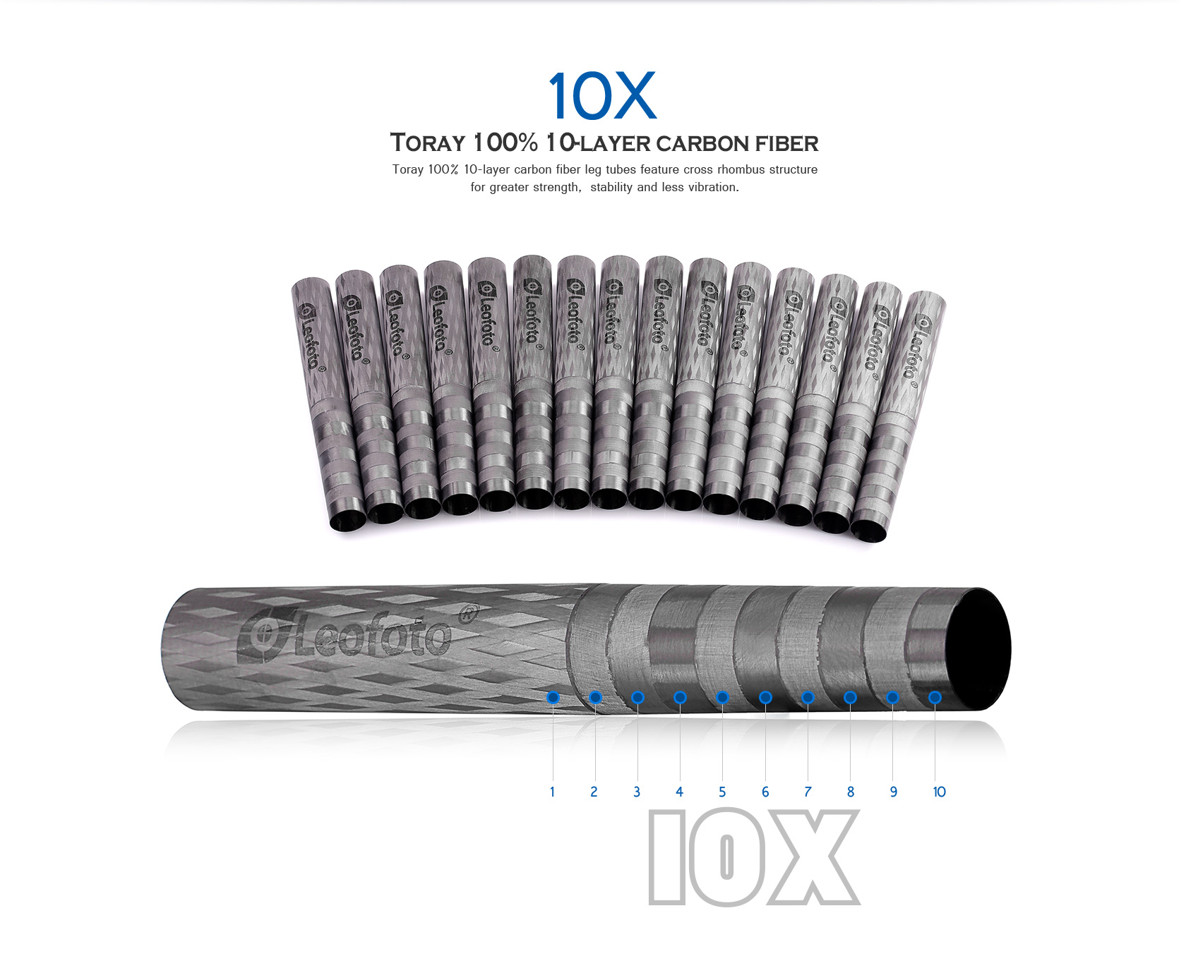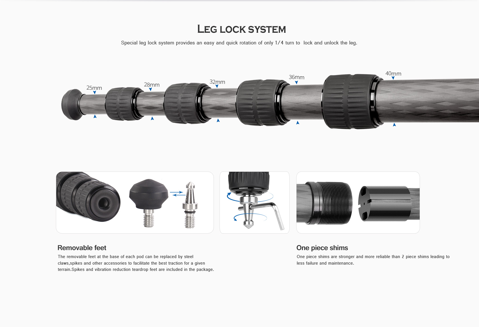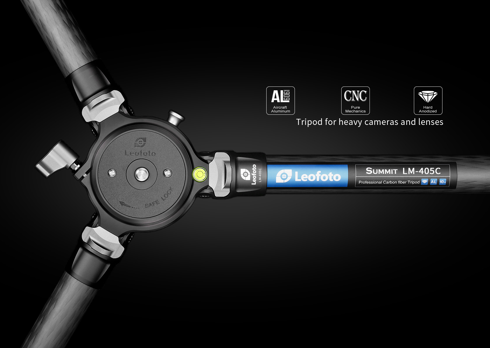 Reach for the top with the Leofoto LM Summit Series Carbon Fiber Tripod. The 5-section support has 10x carbon fiber tubes that make the tripod a lightweight support while maintaining a heavy max load capacity. The 6061 aluminum parts are CNC machined and hard anodized, creating a durable and scratch resistant surface. The twist leg lock system is quick, only requiring a quarter turn, which enables you to completely extend and collapse the tripod rapidly.