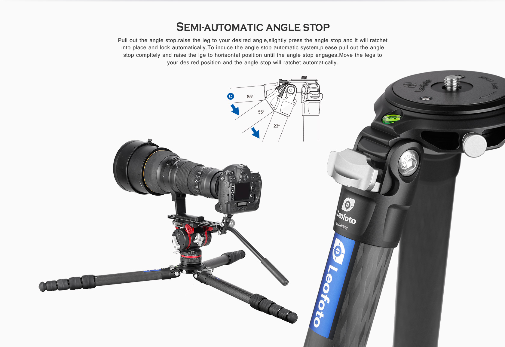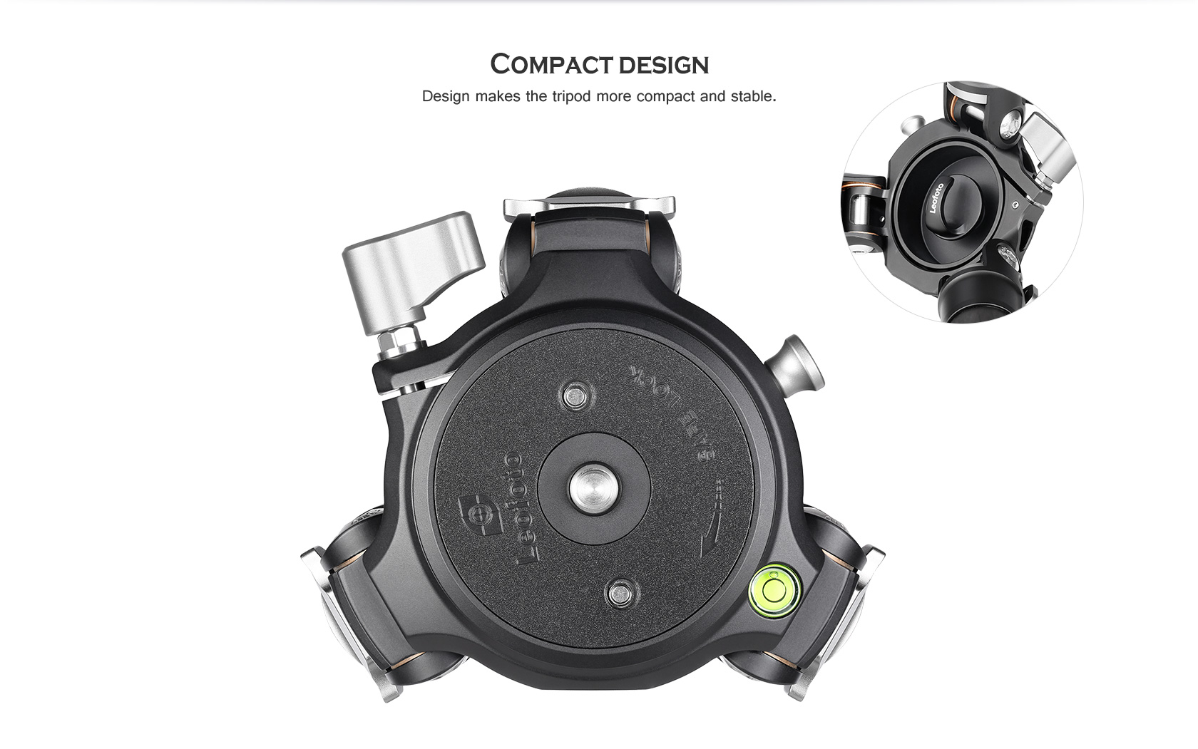 With the tripod’s three variable leg angle stops, it allows you to splay the legs completely out. At the tripod’s apex, the spider has been hollowed out, which adds to the relevance of the tripod’s light weight. Additionally, the mounting platform is removable, so it can be exchanged with the included 75mm video bowl to install a fluid head. An integrated 3/8″-16 socket is made available on the side of the spider for photo or video accessories. Leofoto tripods come with a carrying case to store or travel with the support system.