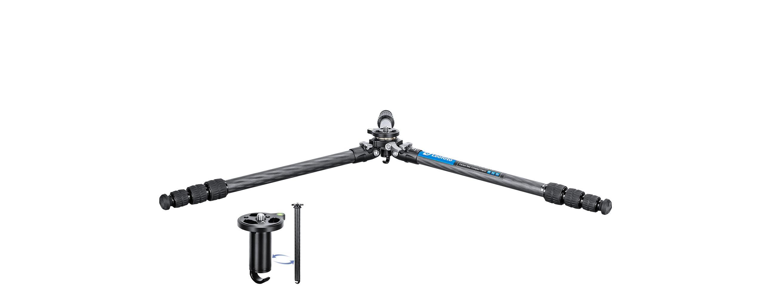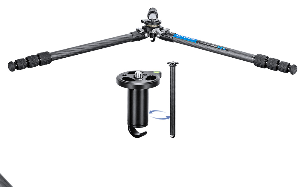 Remove the center column by loosening the twist lock.Set the angle of the tripod to the maximum and install the included short center cloumn,Ground setting is now finished