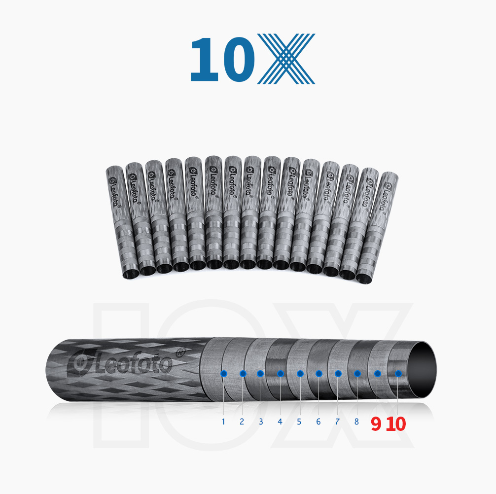 Toray 100% 10-layer carbon fiber leg tubes feature cross rhombus structure for greater strength, stability and less vibration.