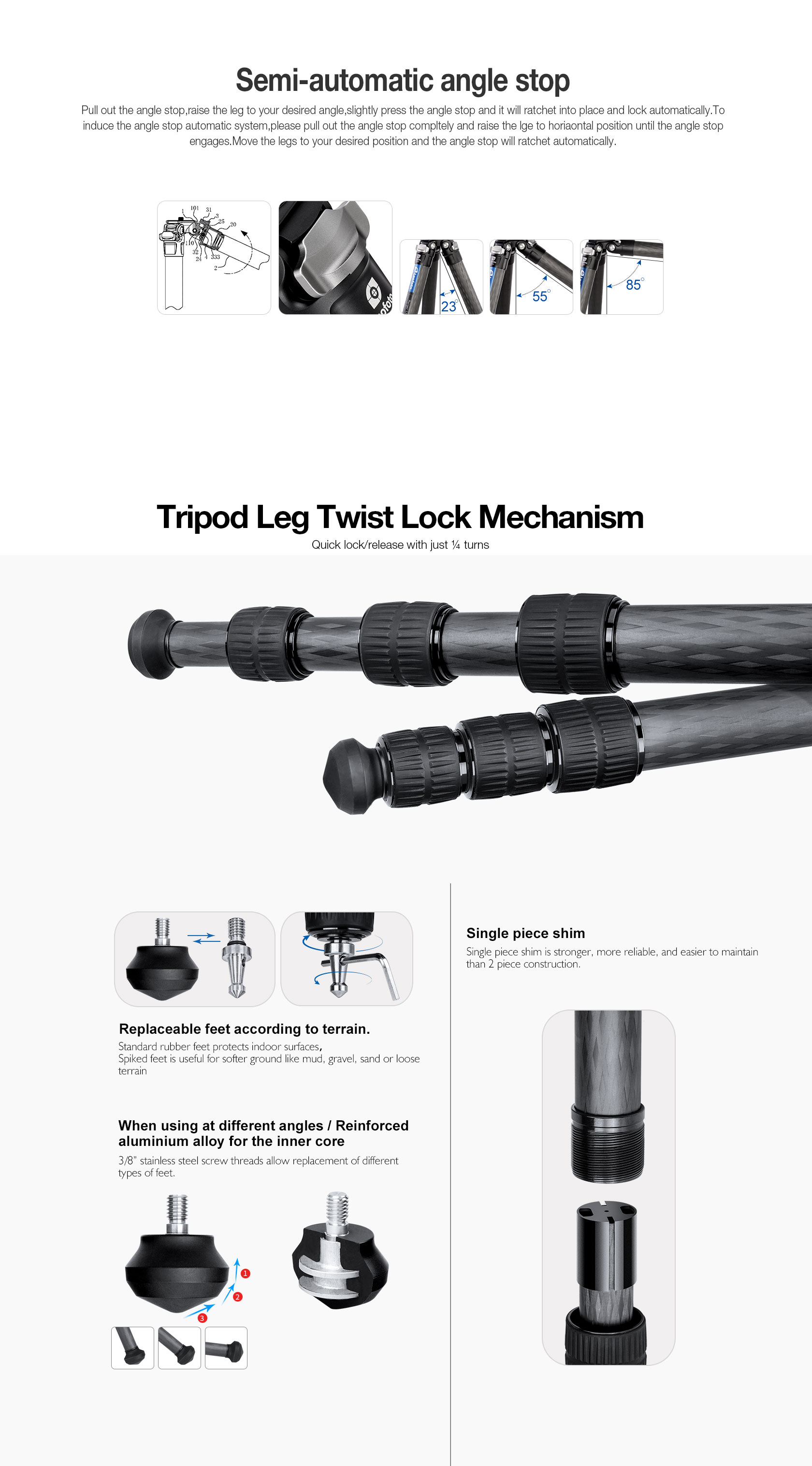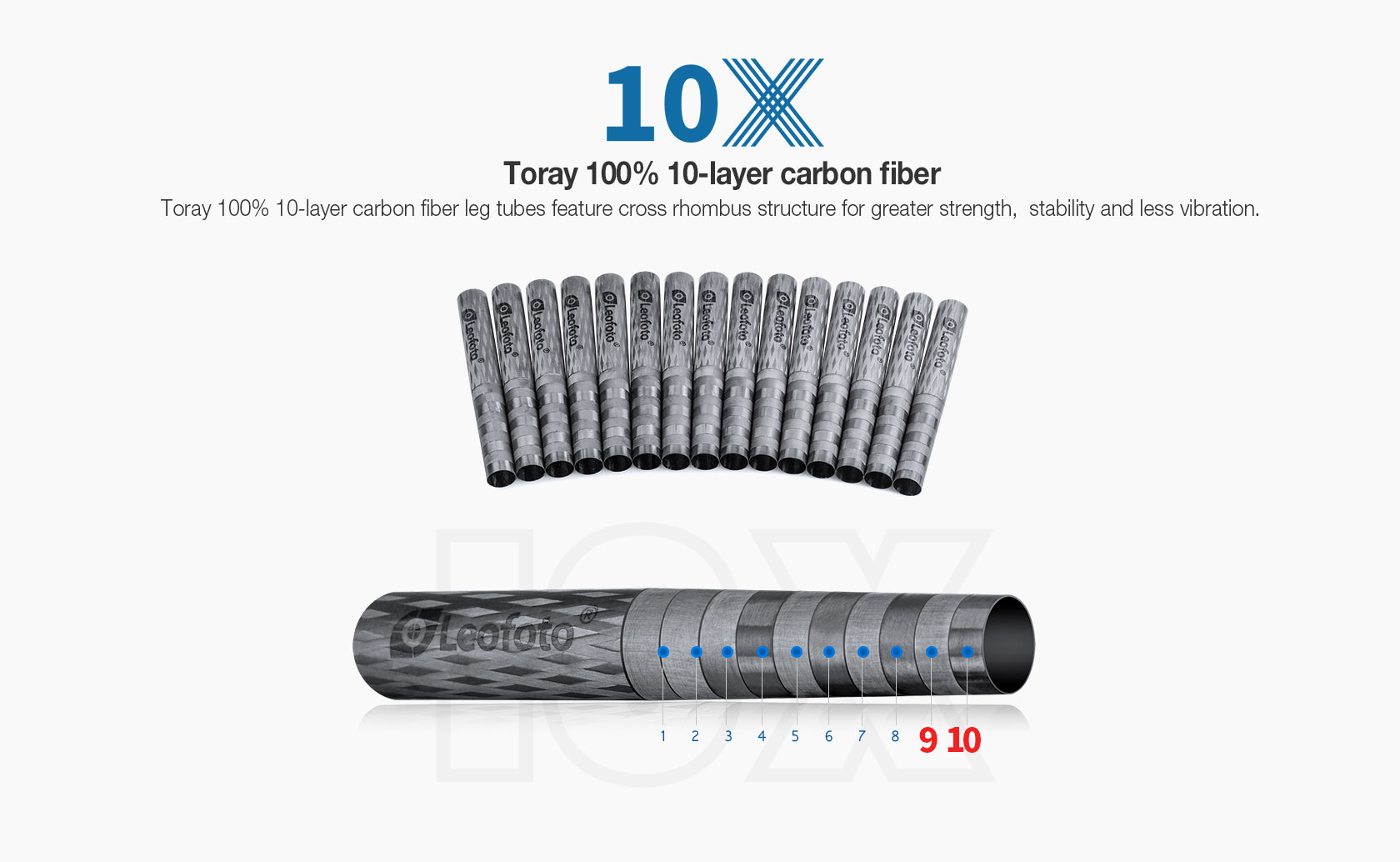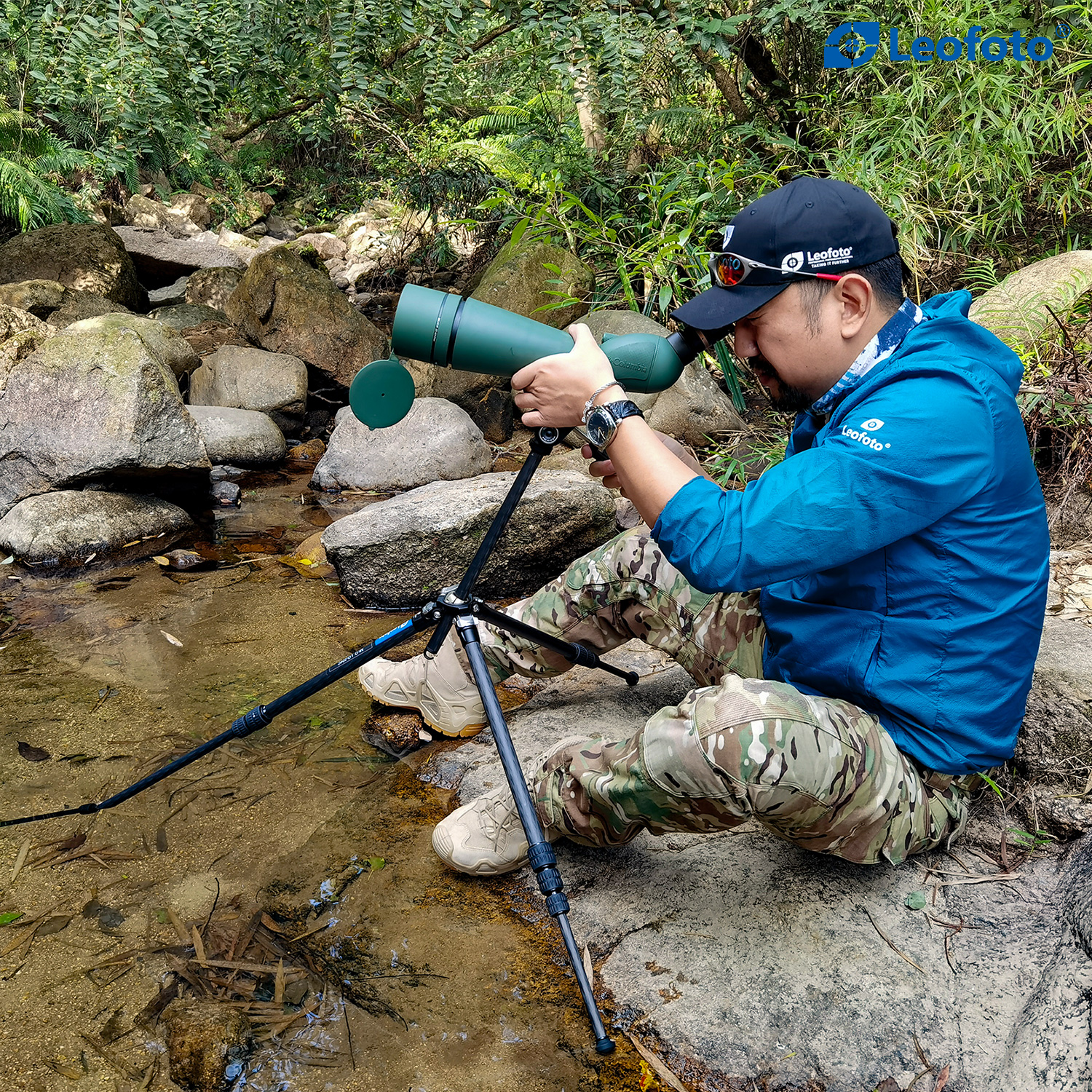 The Leofoto LO Mr. O Series Carbon Fiber Tripod with Built-In Hollow Ball is a lightweight and versatile tripod featuring a hollow ball design that allows the center column to be free of the limitation from linear vertical movement, adjusting its angle freely like a ball head. This adjustable center column positioning works along with the independent leg spread to allow quick leveling of a tripod head when shooting on uneven terrain. In addition to being easily positioned, the center column is removable and reversible for positioning a camera upside down and low to the ground for low-perspective and macro photography. The included short center column provides low positioning with a wide leg spread for added stability.