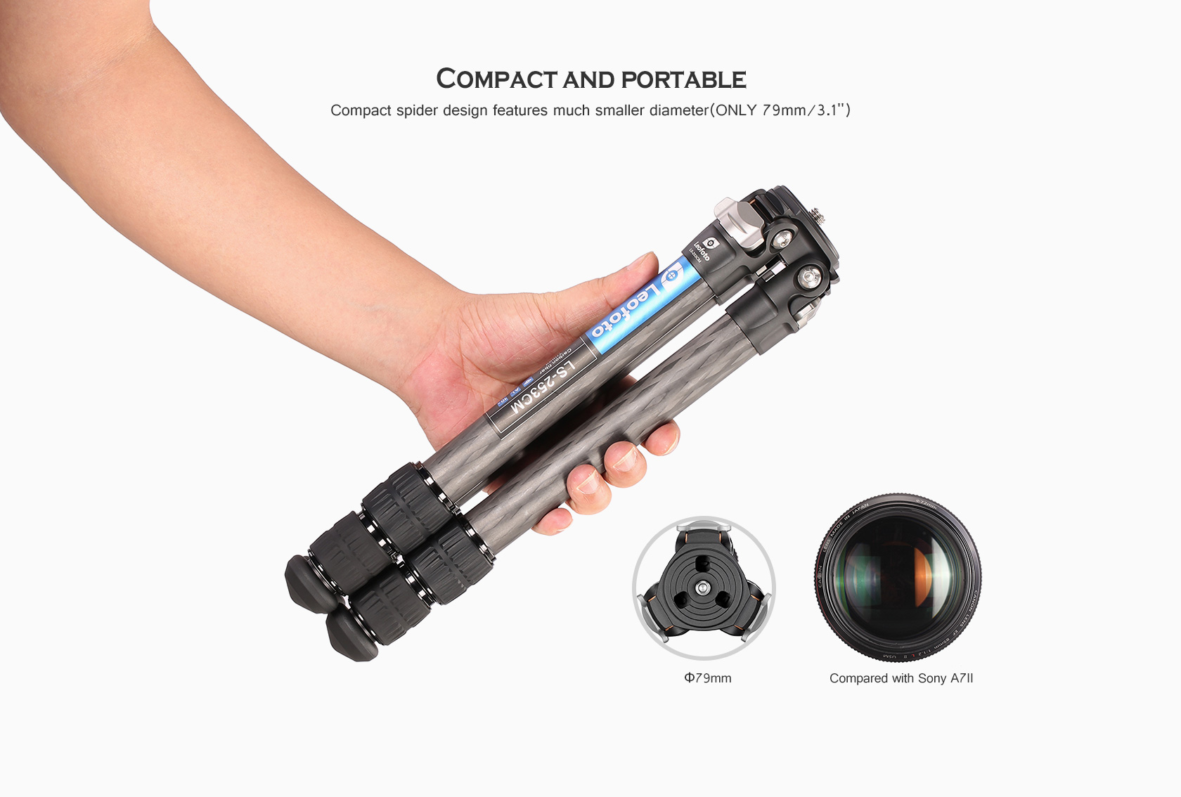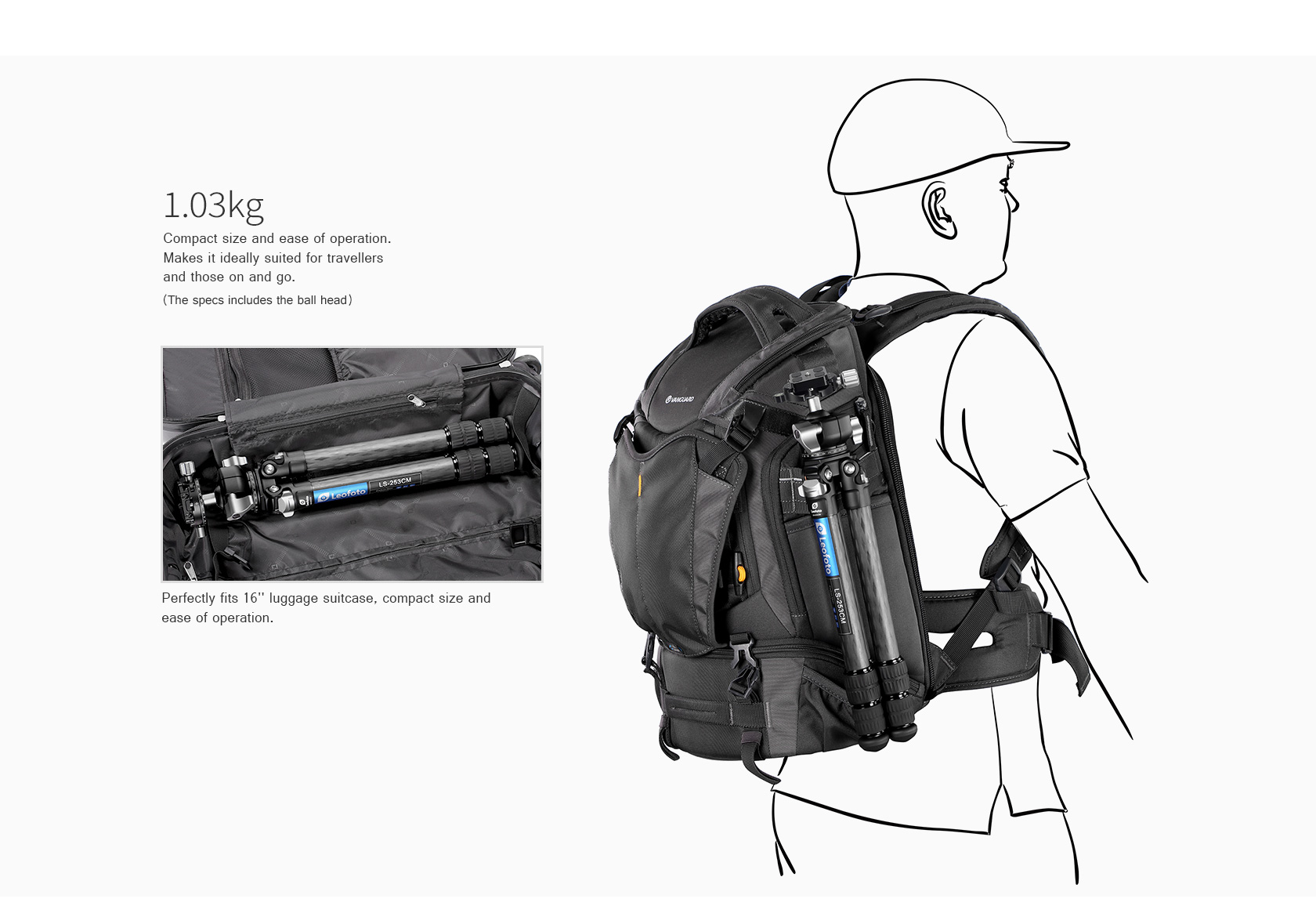 Toray 100% 10-layer carbon fiber leg tubes feature cross rhombus structure for greater strength, stability and less vibration.