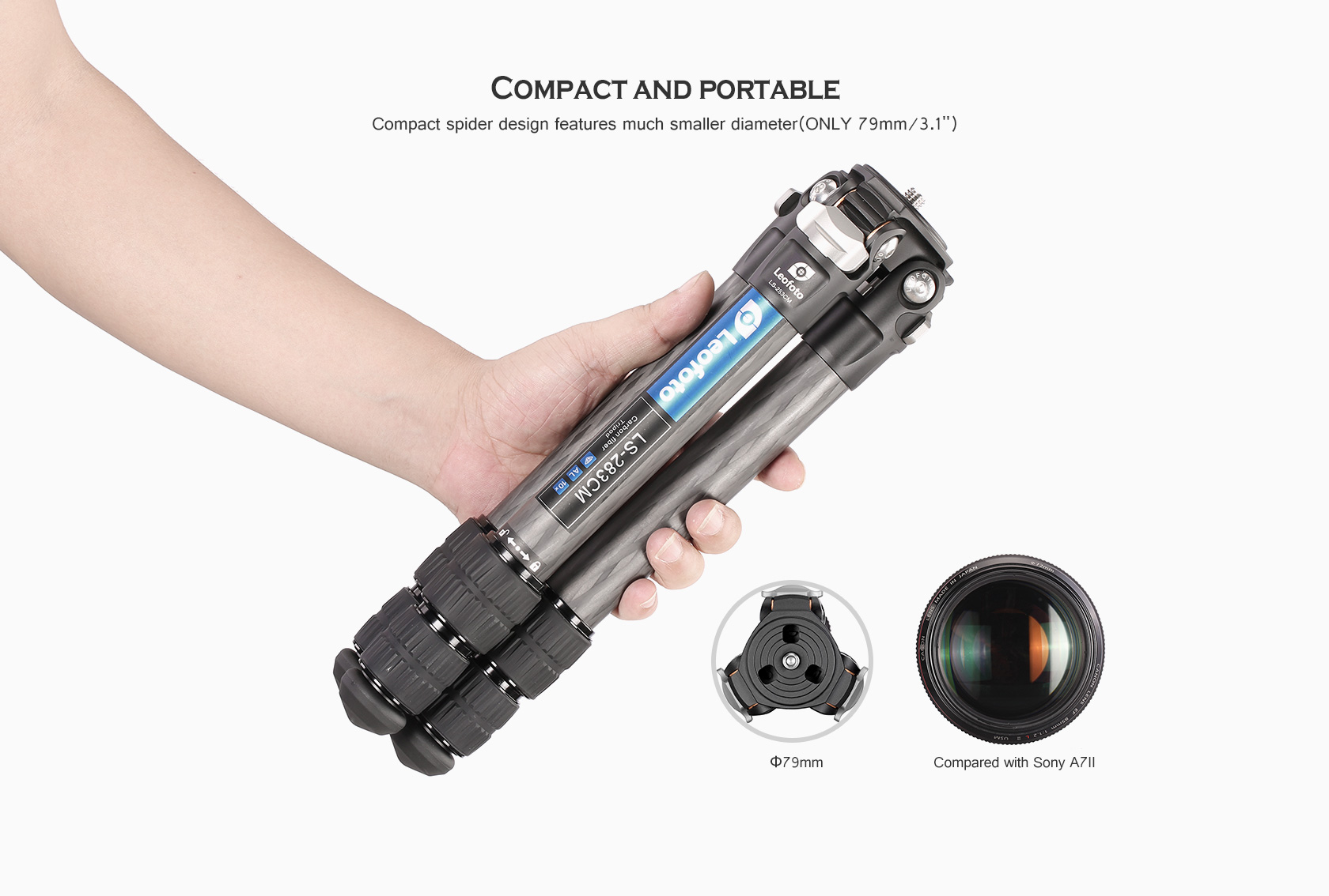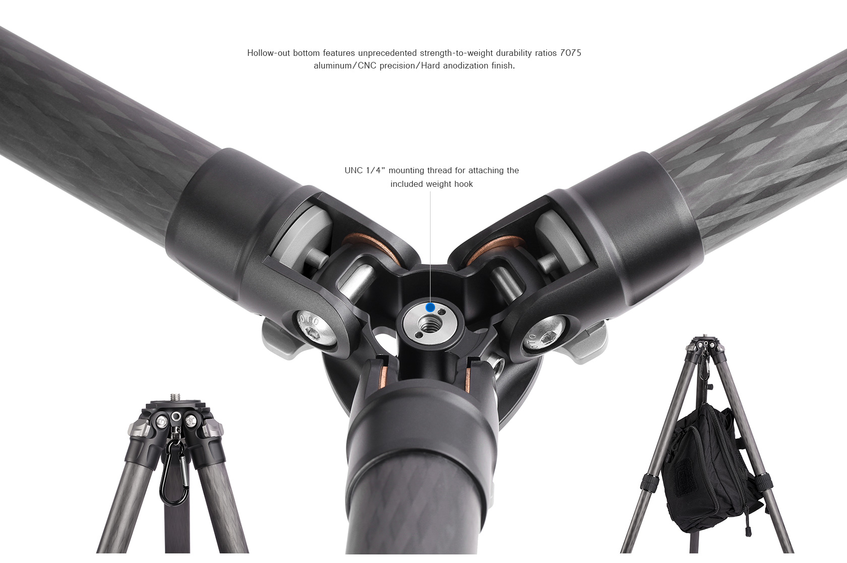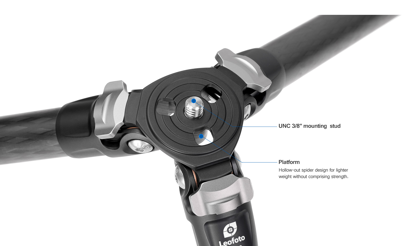 Toray 100% 10-layer carbon fiber leg tubes feature cross rhombus structure for greater strength, stability and less vibration.