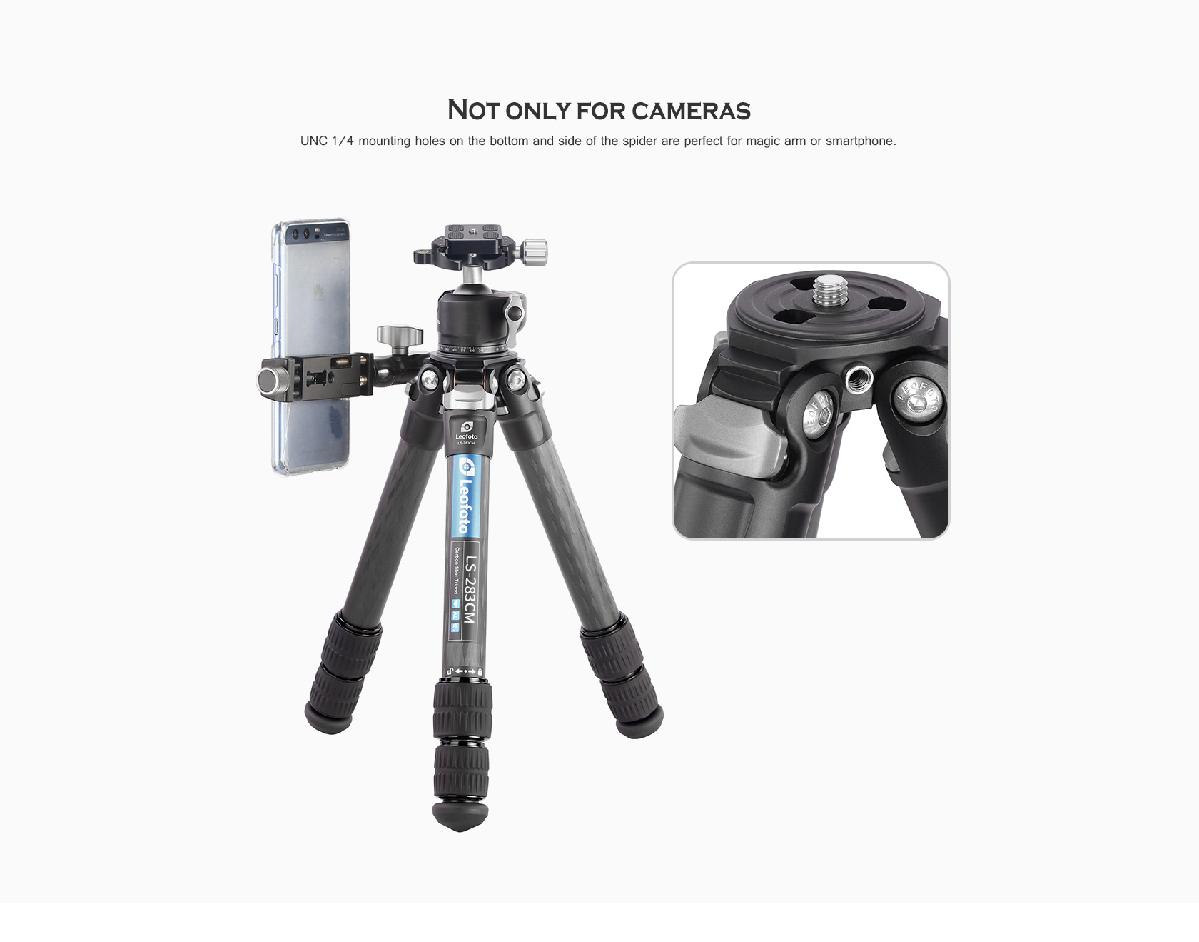 UNC 1/4 mounting holes on the bottom and side of the spider are perfect for magic arm or smartphone.