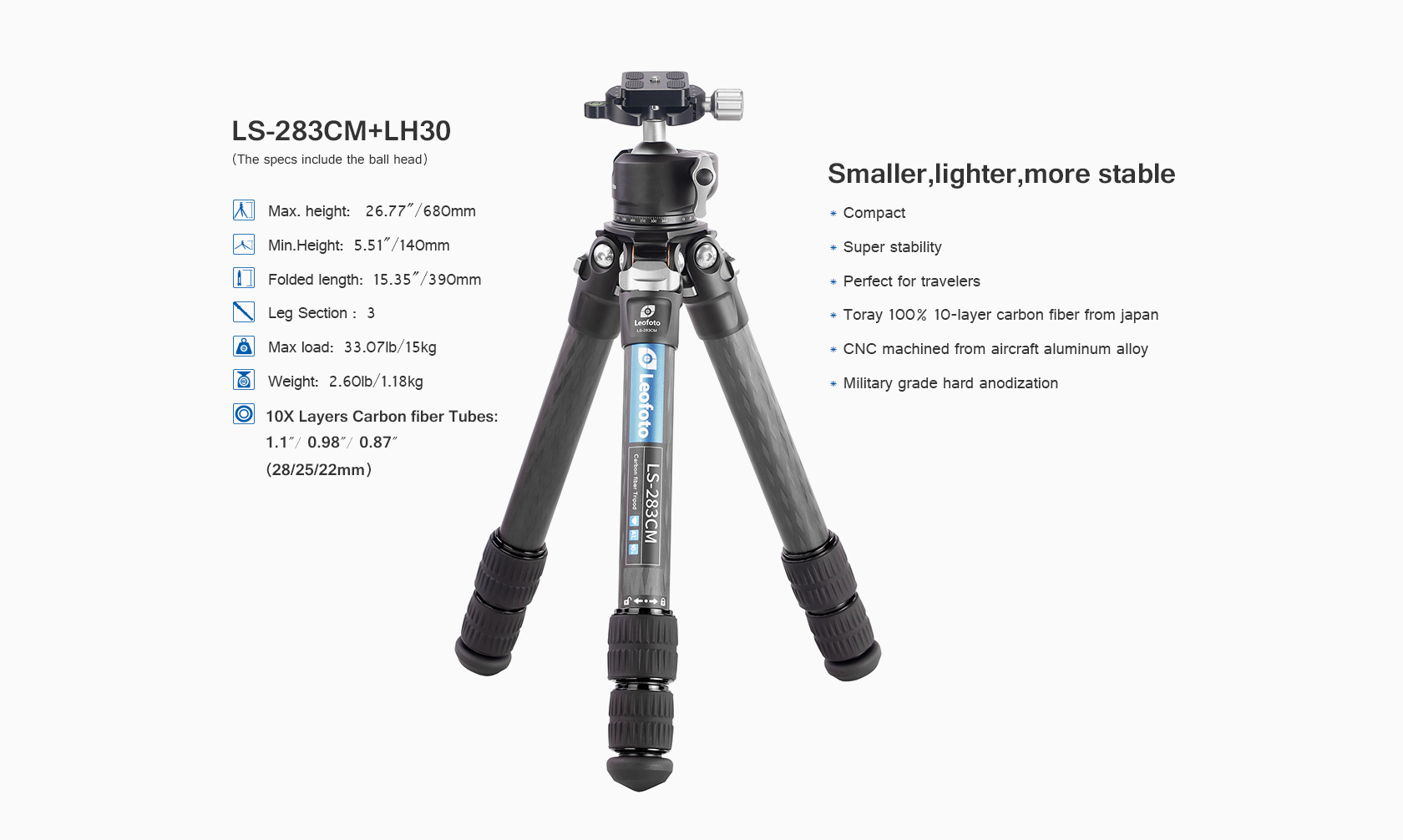 Leofoto LS-283CM+LH-30 Professional carbon fiber tripod