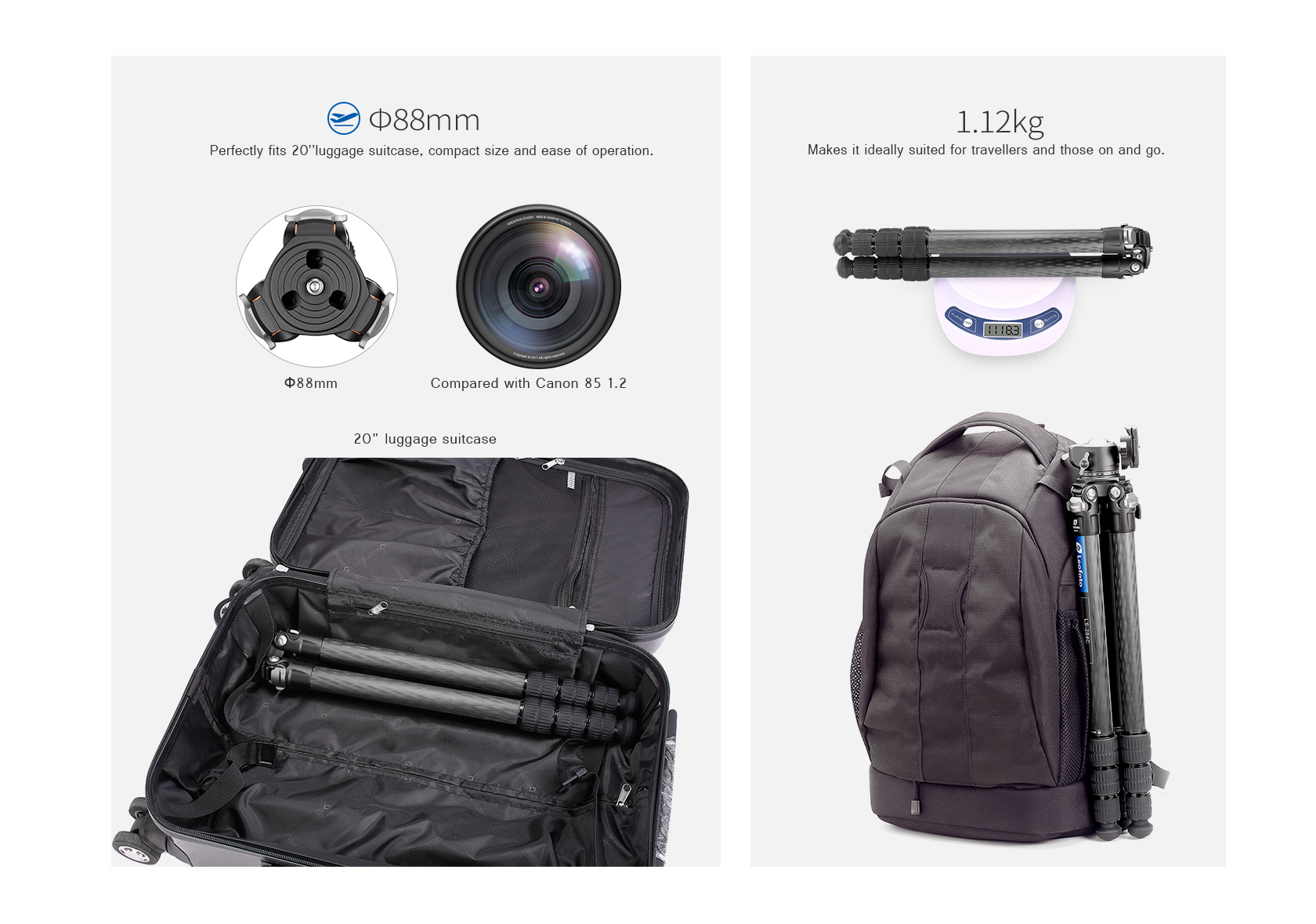 Toray 100% 10-layer carbon fiber leg tubes feature cross rhombus structure for greater strength, stability and less vibration.