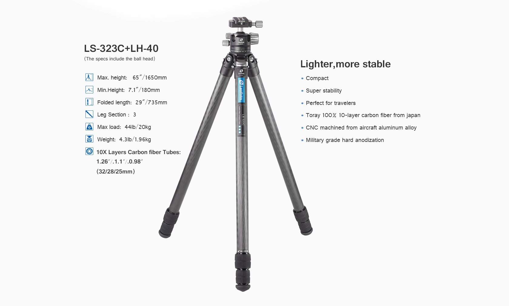 Leofoto LS-323C+LH-40 Professional carbon fiber tripod