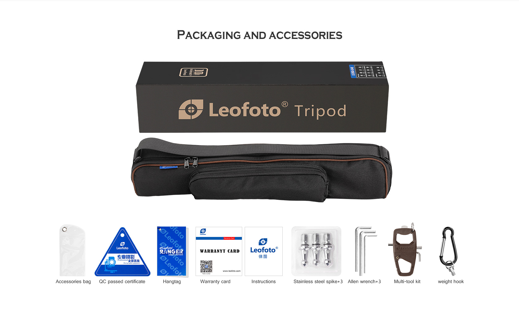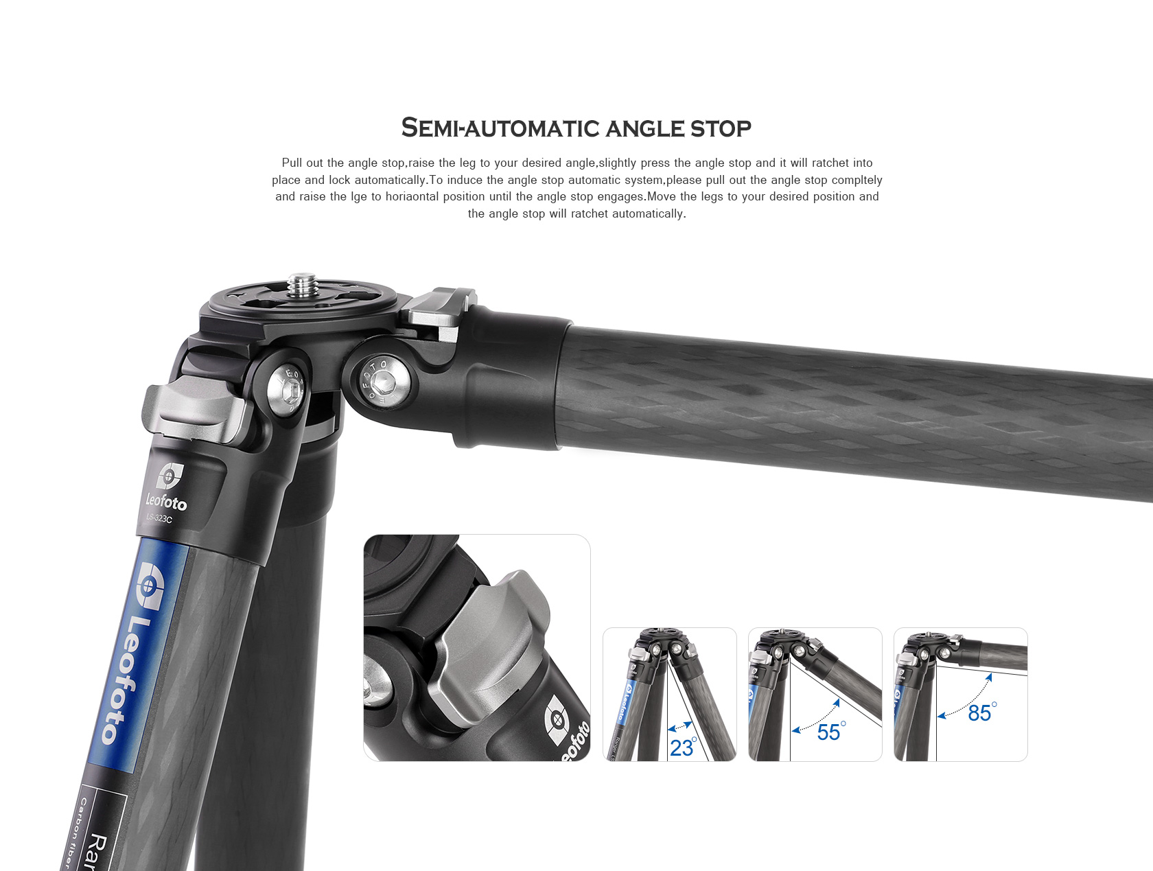 Toray 100% 10-layer carbon fiber leg tubes feature cross rhombus structure for greater strength, stability and less vibration.