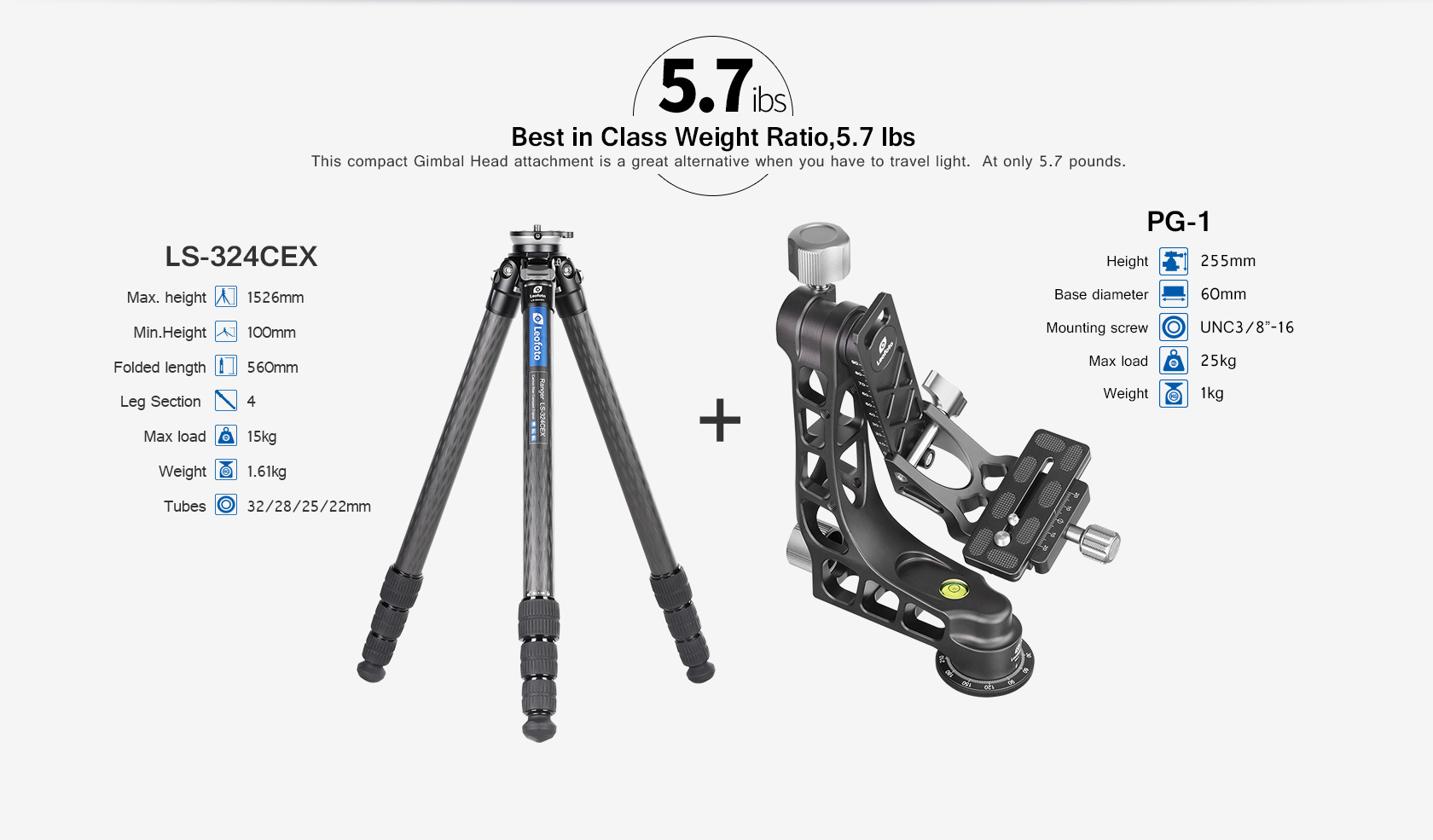Leofoto LS-324CEX+PG-1 Professional carbon fiber tripod
