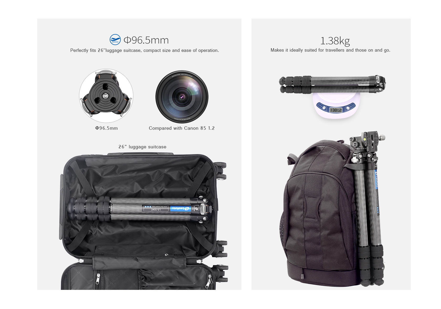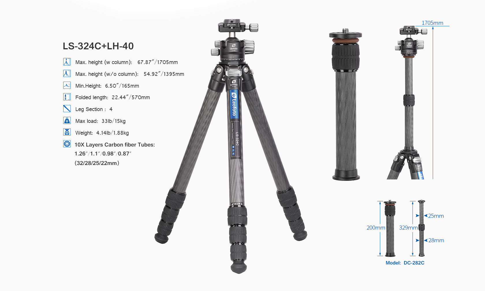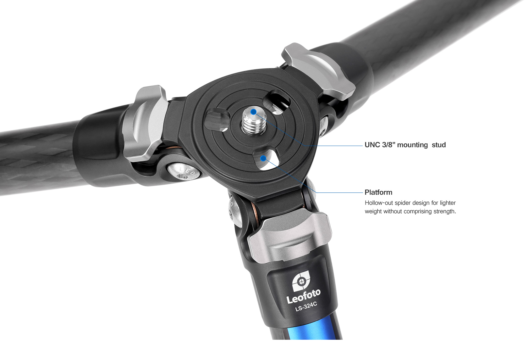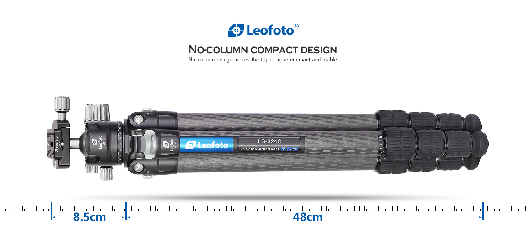 Toray 100% 10-layer carbon fiber leg tubes feature cross rhombus structure for greater strength, stability and less vibration.