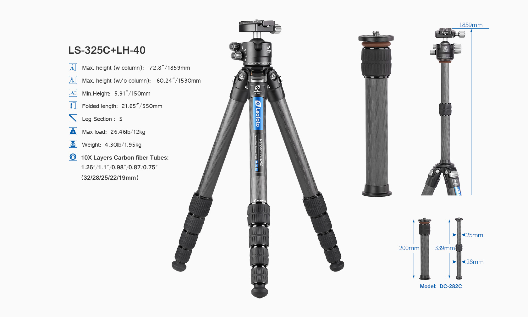 Leofoto LS-325C+LH-40 Professional carbon fiber tripod