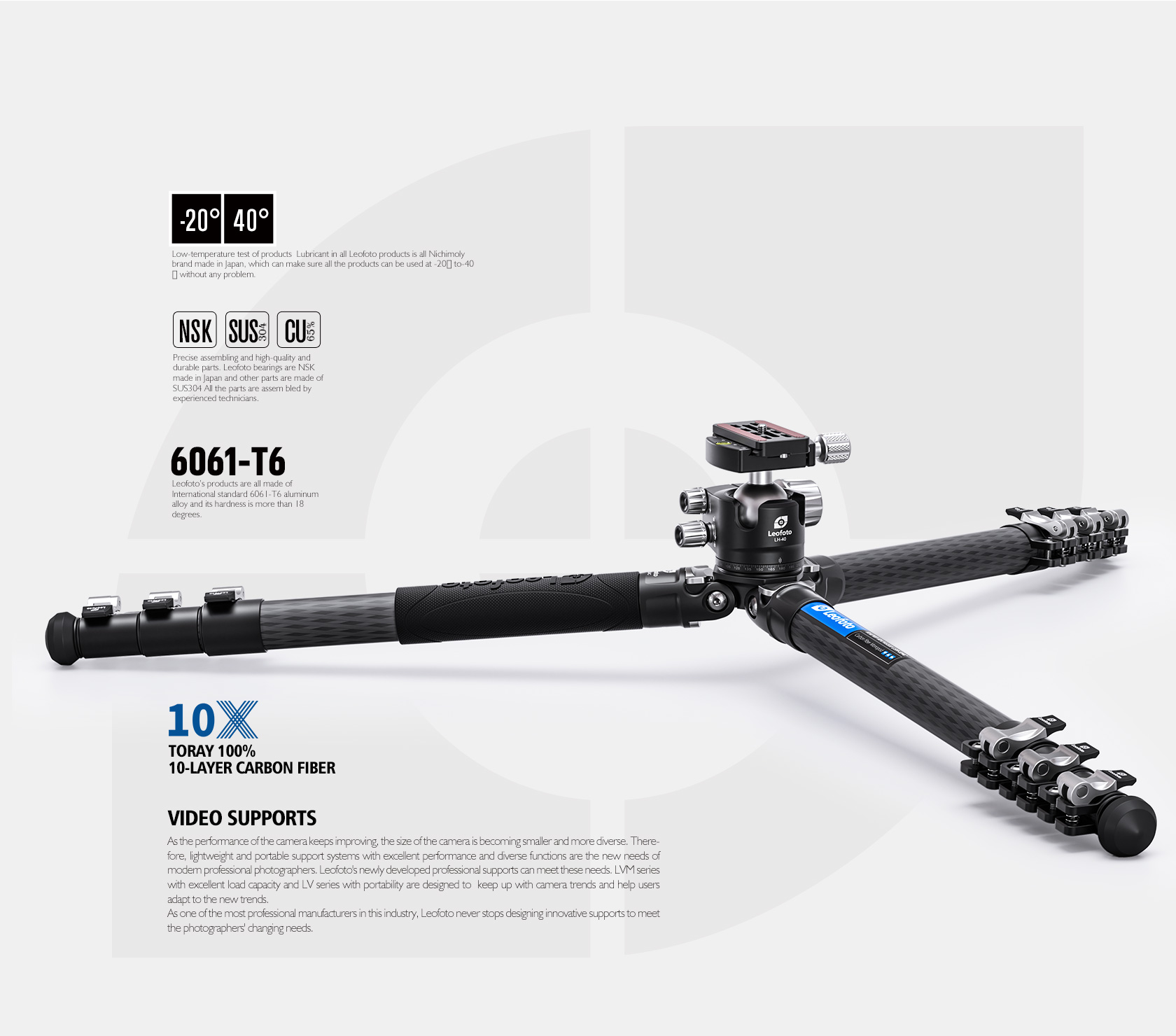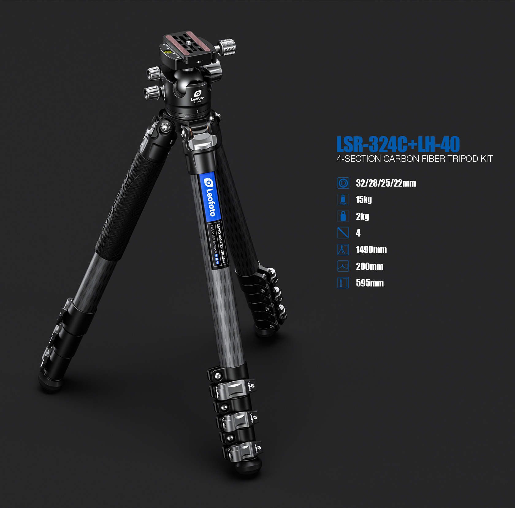 Leofoto LSR-324C+LH-40 Professional carbon fiber tripod