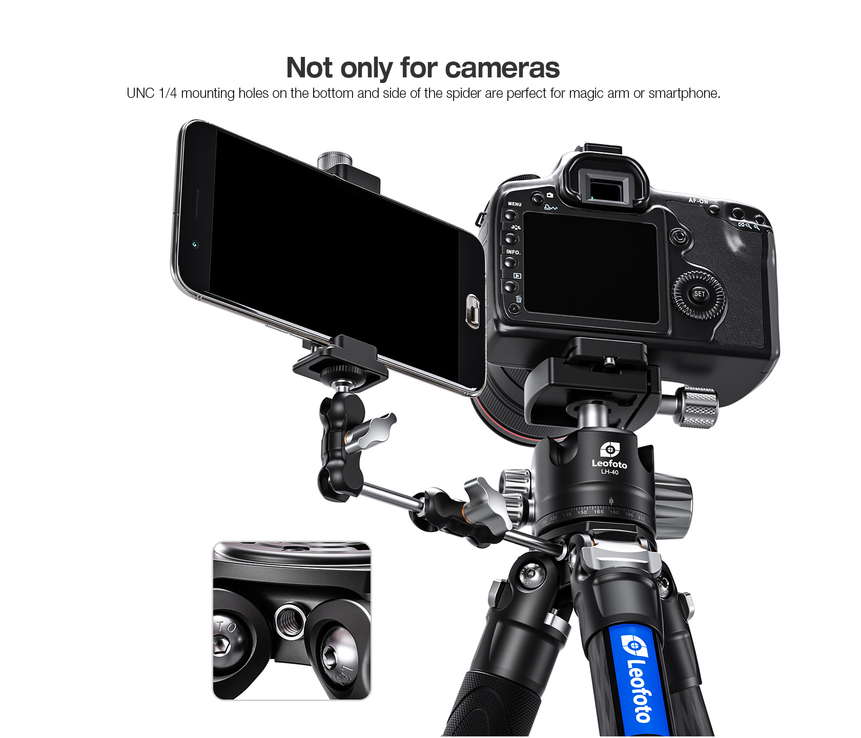 • 1/4″-20 threaded Accessory Socket for Monitor, Microphone, LED light or More