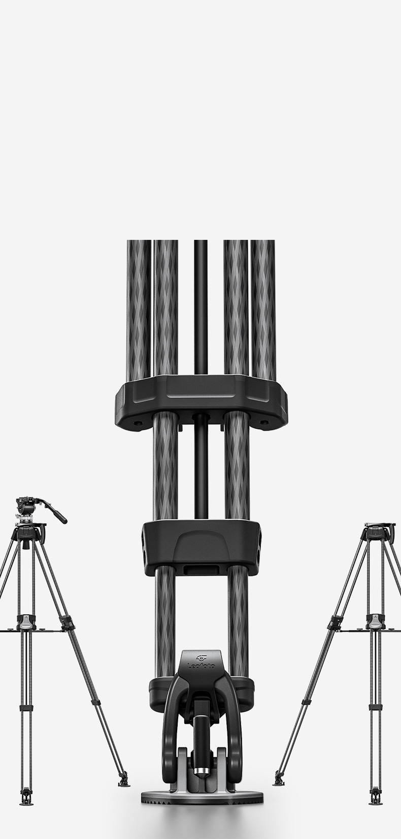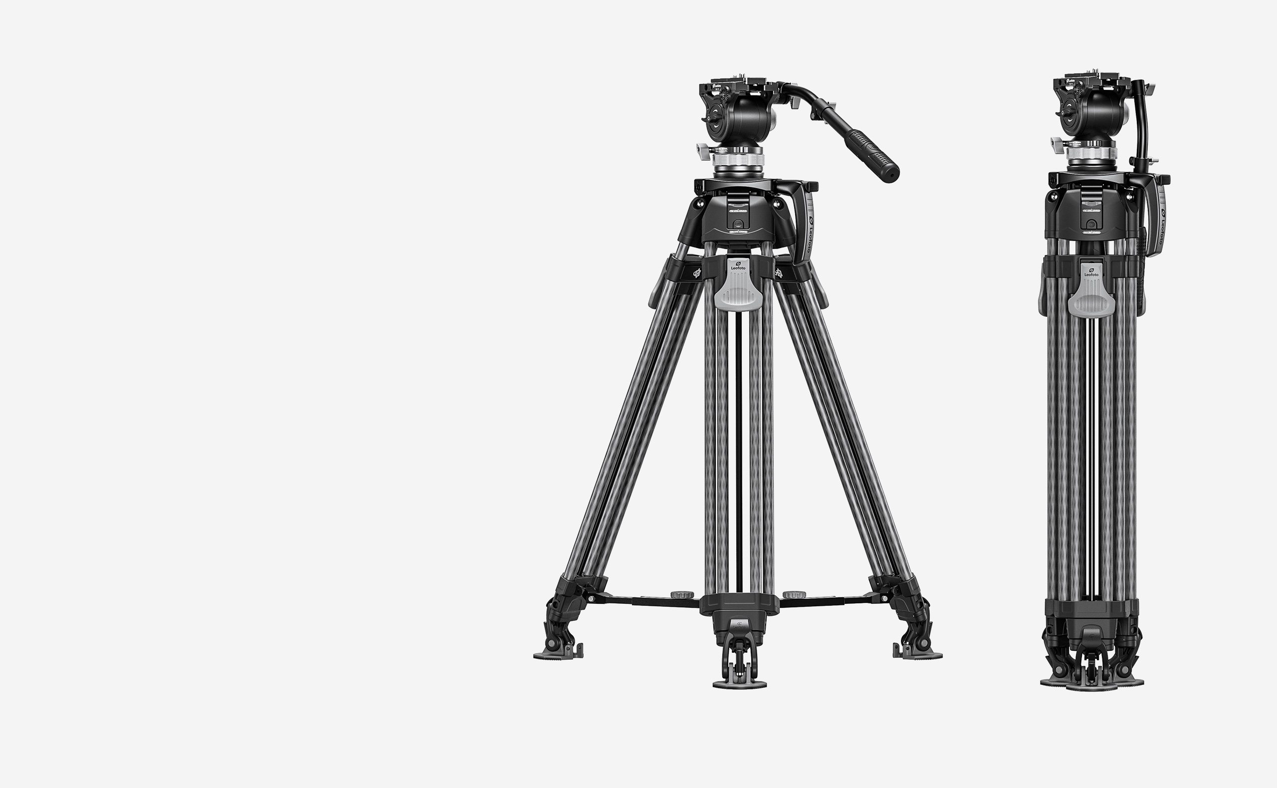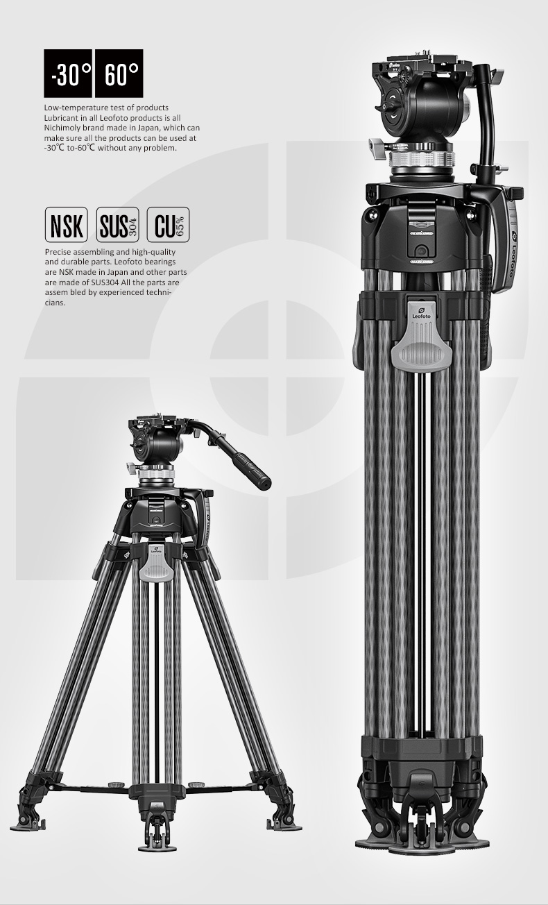 The Leofoto LVF Series tripods feature dual leg tubes which offer greater rigidity and stability with two points of connection to the apex, the perfect choice for high-end cinematography and video. Traditional video tripods only come with a middle spreader system, but the LVF Series comes with an adjustable spreader system which enables the user to switch between a ground and mid-level spreader adding flexibility. These tripods are made of carbon flber for light weight and have the ability to collapse into a compact size for portability.