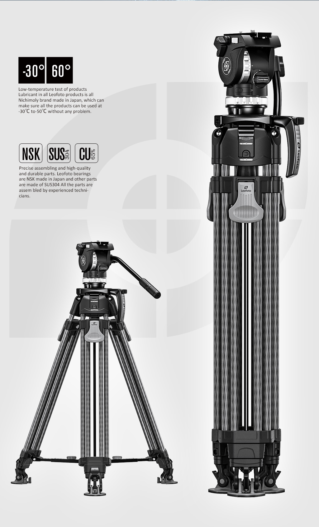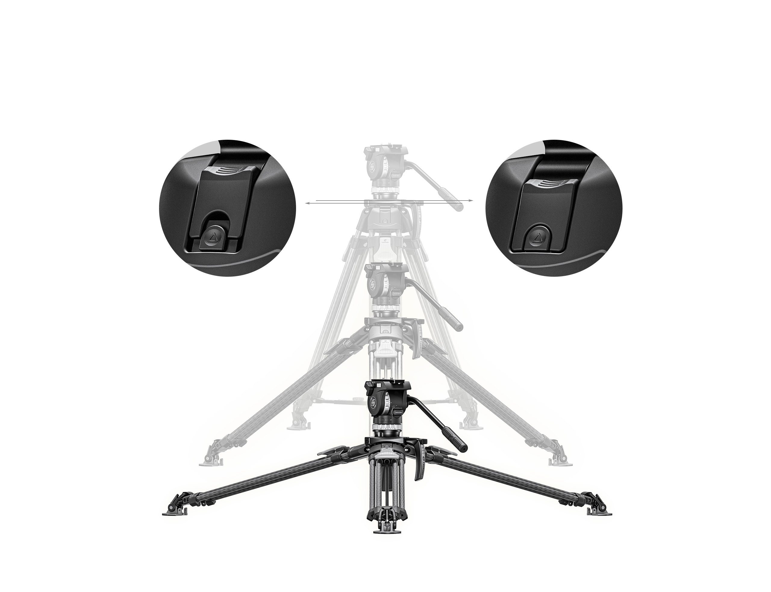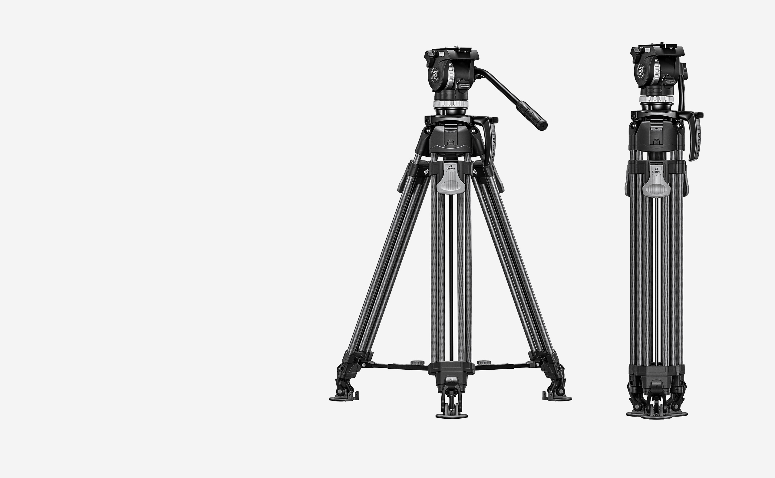 The Leofoto LVF Series tripods feature dual leg tubes which offer greater rigidity and stability with two points of connection to the apex, the perfect choice for high-end cinematography and video. Traditional video tripods only come with a middle spreader system, but the LVF Series comes with an adjustable spreader system which enables the user to switch between a ground and mid-level spreader adding flexibility. These tripods are made of carbon flber for light weight and have the ability to collapse into a compact size for portability.