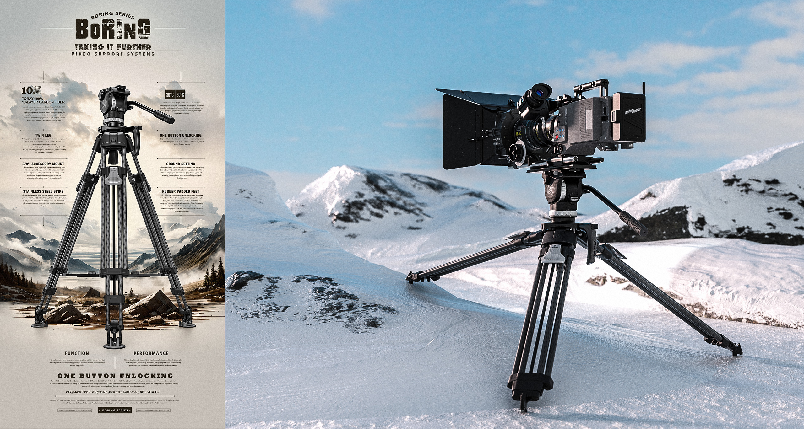 Stainless steel spike feet and hoof-shaped rubber feet make the tripod more flexible in different environments.