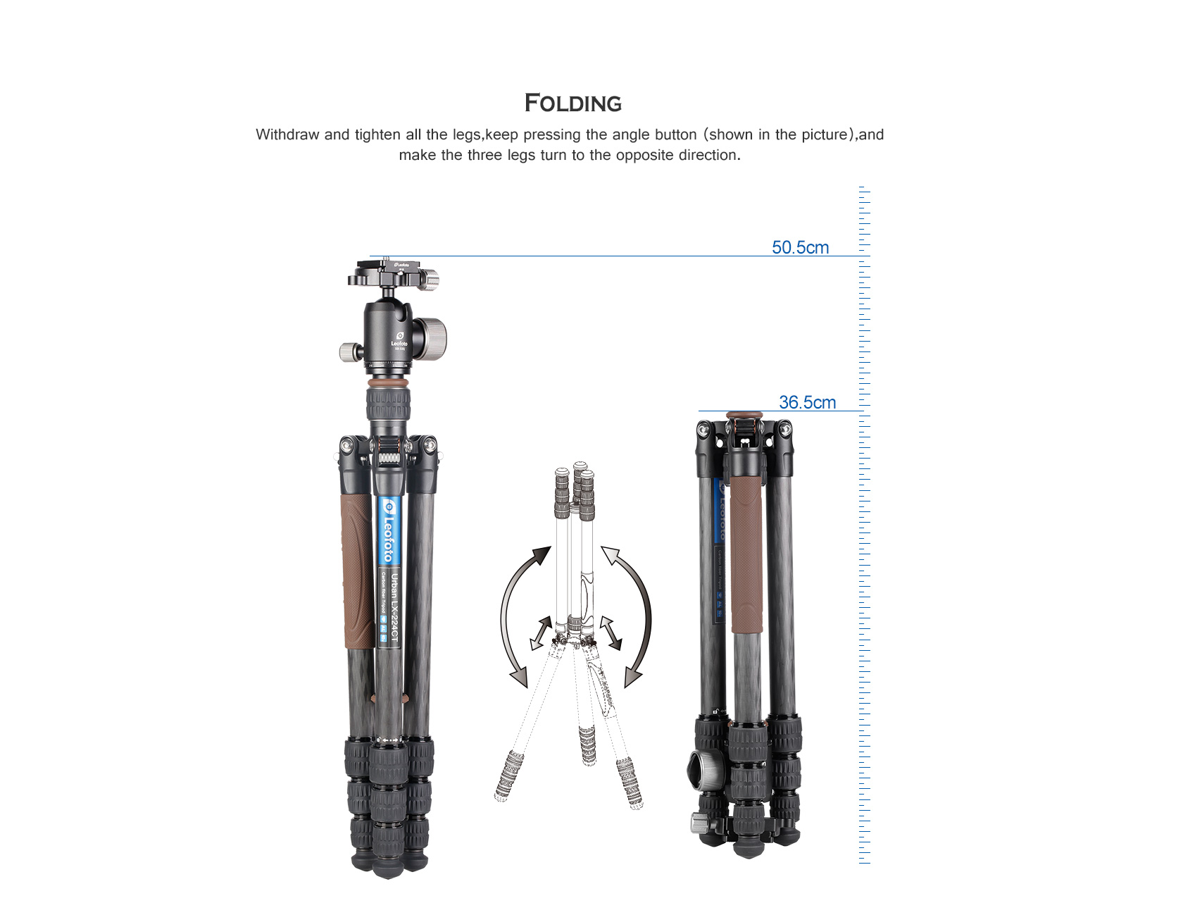 The Urban Series tripods feature a convenient 180° leg-folding mechanism, ensuring exceptional compactness for easy travel. Despite their remarkably lightweight build, they offer robust stability. Each tripod includes a removable center column and a versatile ball head with a friction knob. If you’re searching for the perfect travel companion, look no further than the Urban tripods!