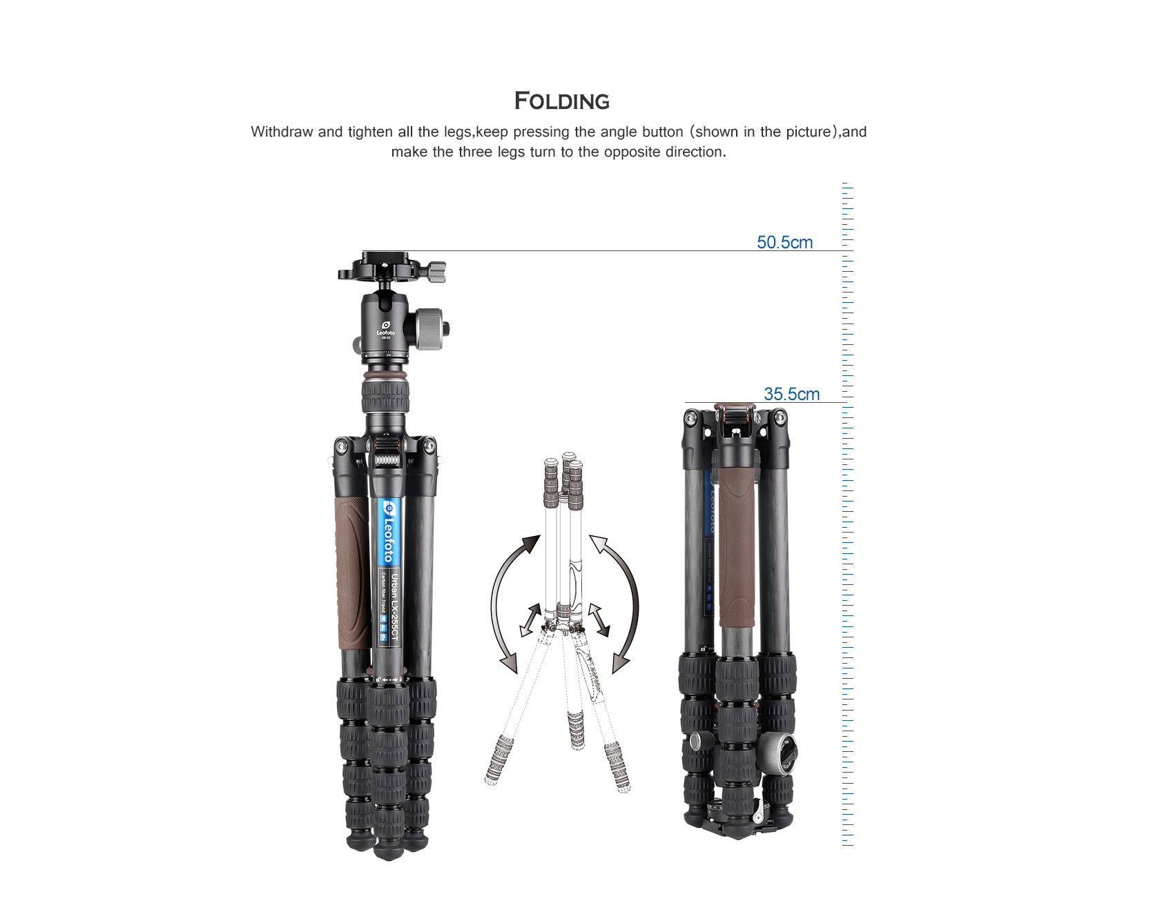The Urban Series tripods feature a convenient 180° leg-folding mechanism, ensuring exceptional compactness for easy travel. Despite their remarkably lightweight build, they offer robust stability. Each tripod includes a removable center column and a versatile ball head with a friction knob. If you’re searching for the perfect travel companion, look no further than the Urban tripods!