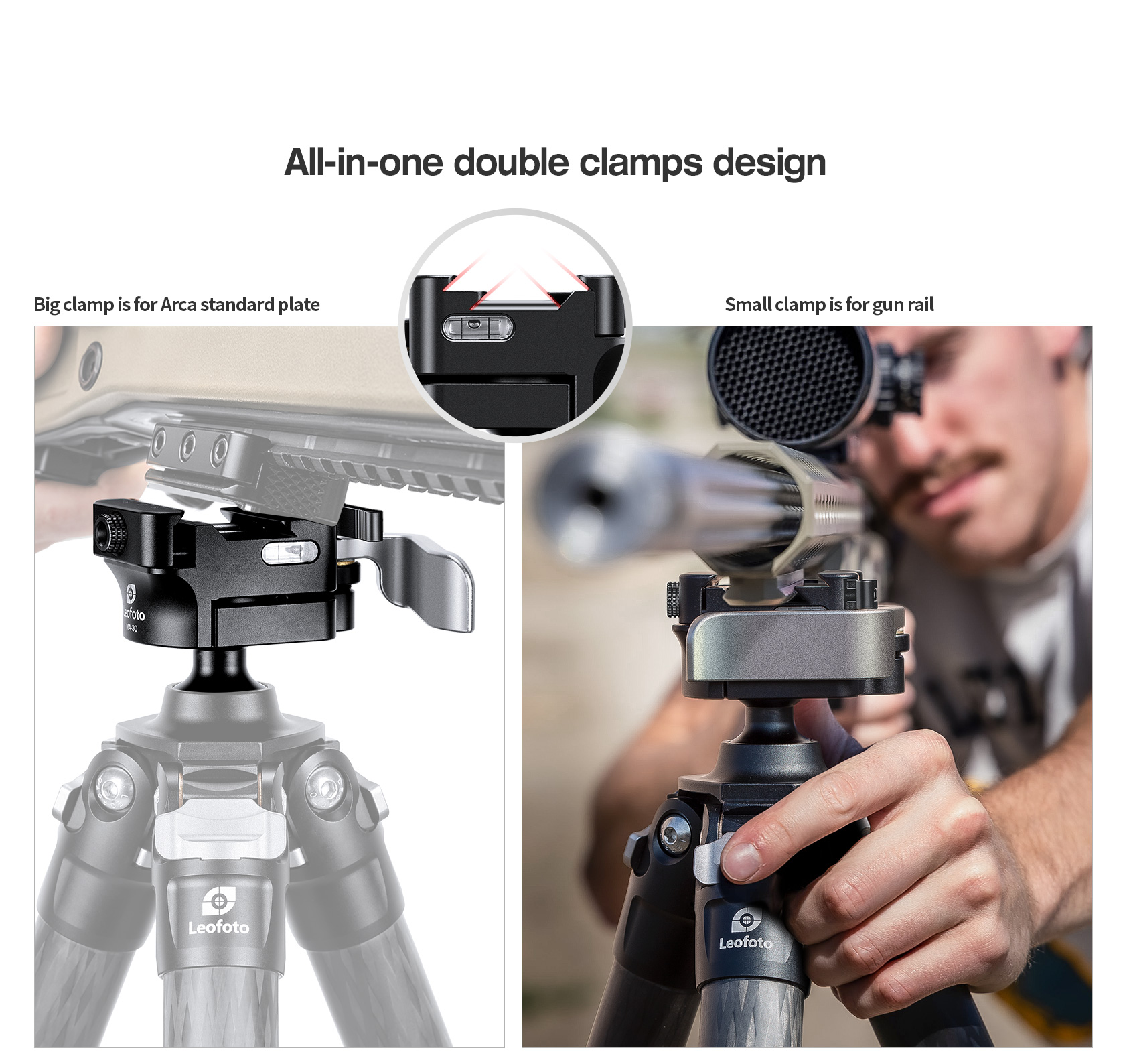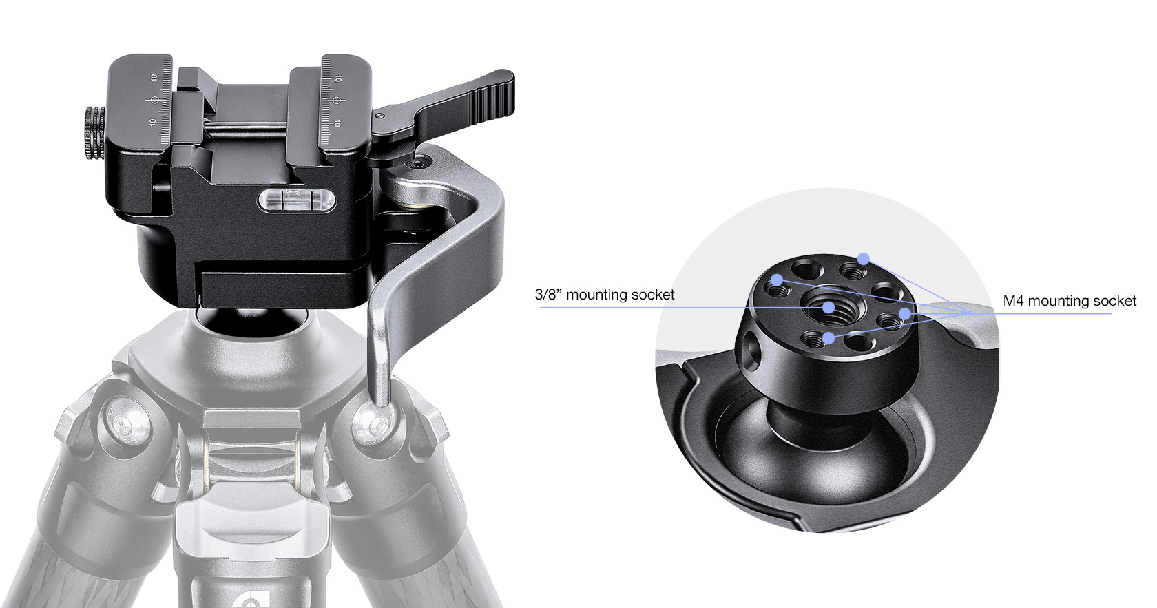 The Leofoto MA-30L Lever-Release Rapid Lock Ball Head was designed specifically to be used on an SA series tripod. The head has a lever release to lock/unlock the ball and a redesigned lever-release clamp system with an adjustable clamping width.