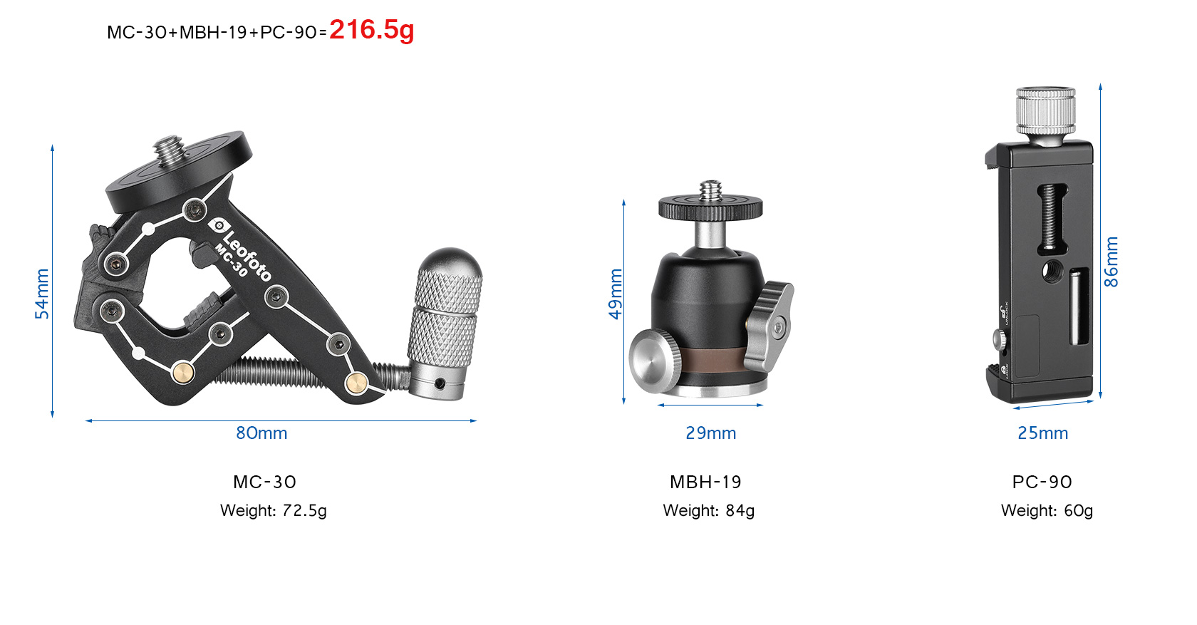 Leofoto MC-30 +MBH-19+PC-90 II Multipurpose Clamp Kit for Phones